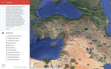 Erbil (Rûdaw) – Google şirketi, Türkiye’nin isteği üzerine İngilizce haritasında (Maps) coğrafi olarak işaretlenen Kürdistan haritasını kaldırıldı.