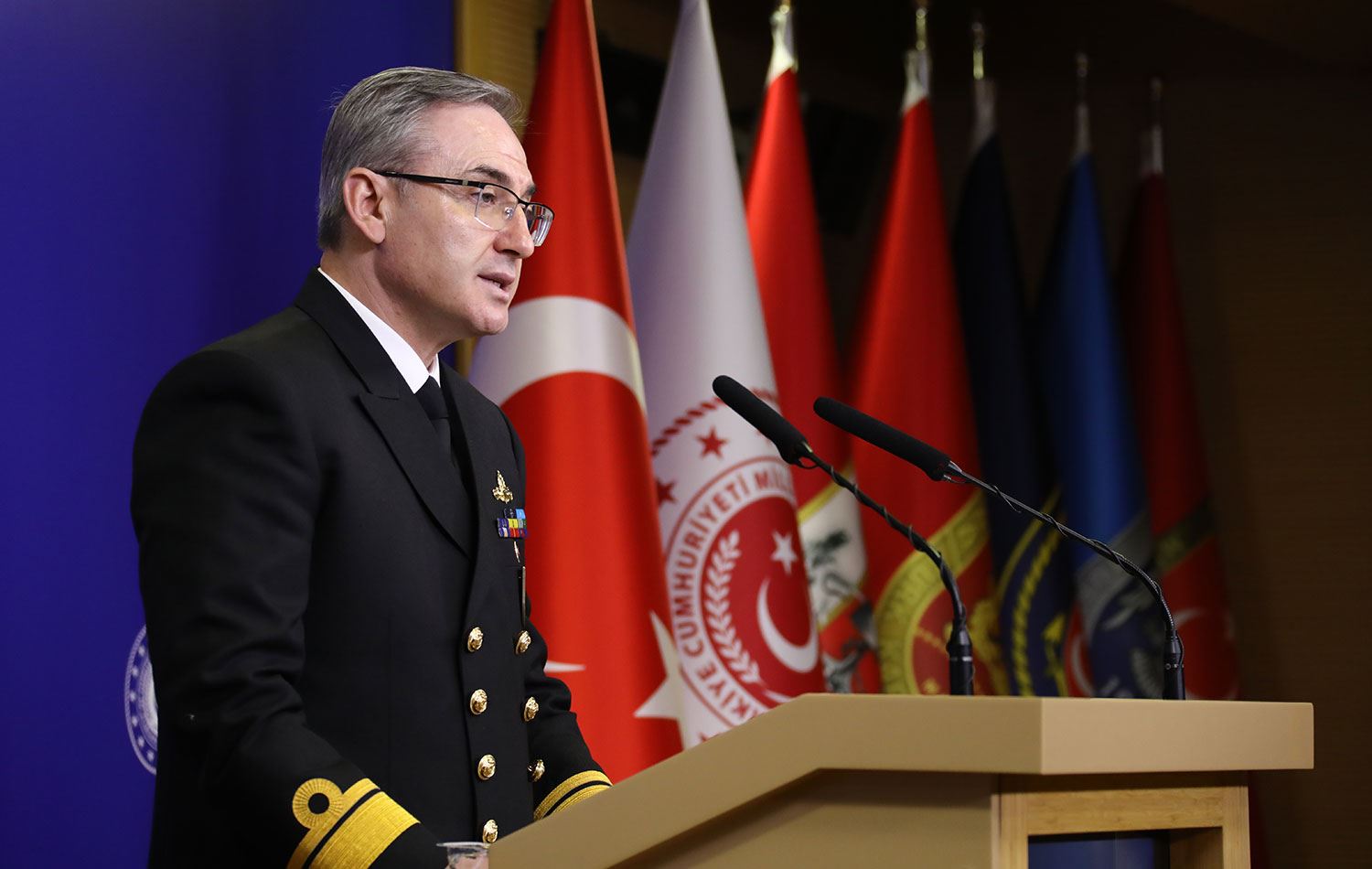 MSB Basın ve Halkla İlişkiler Müşaviri Tuğamiral Zeki Aktürk, Bakanlık'ta düzenlenen basın bilgilendirme toplantısında açıklamalarda bulundu.