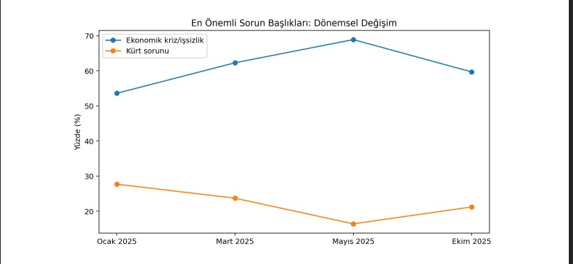 1. Türkiye'nin en önemli sorunu: Ekonomi zirvede, Kürt sorunu dalgalı