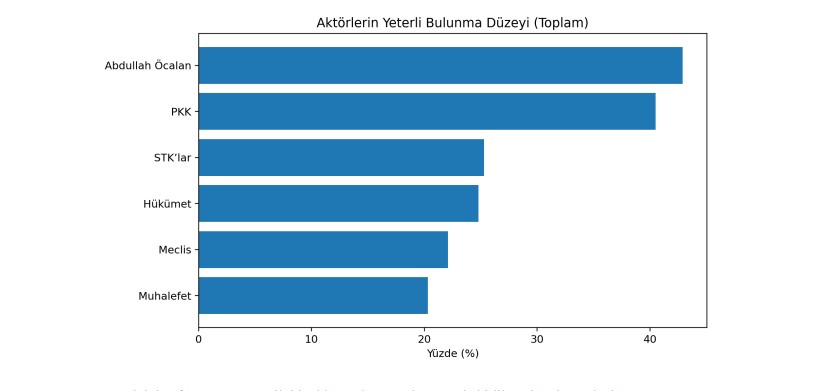 "Aktörler sorumluluklarını ne derece yerine getiriyor?" sorusuna verilen yanıtlarda, en yüksek yeterlilik atfı Abdullah Öcalan’a yapılırken, muhalefet partileri listenin sonunda yer aldı.