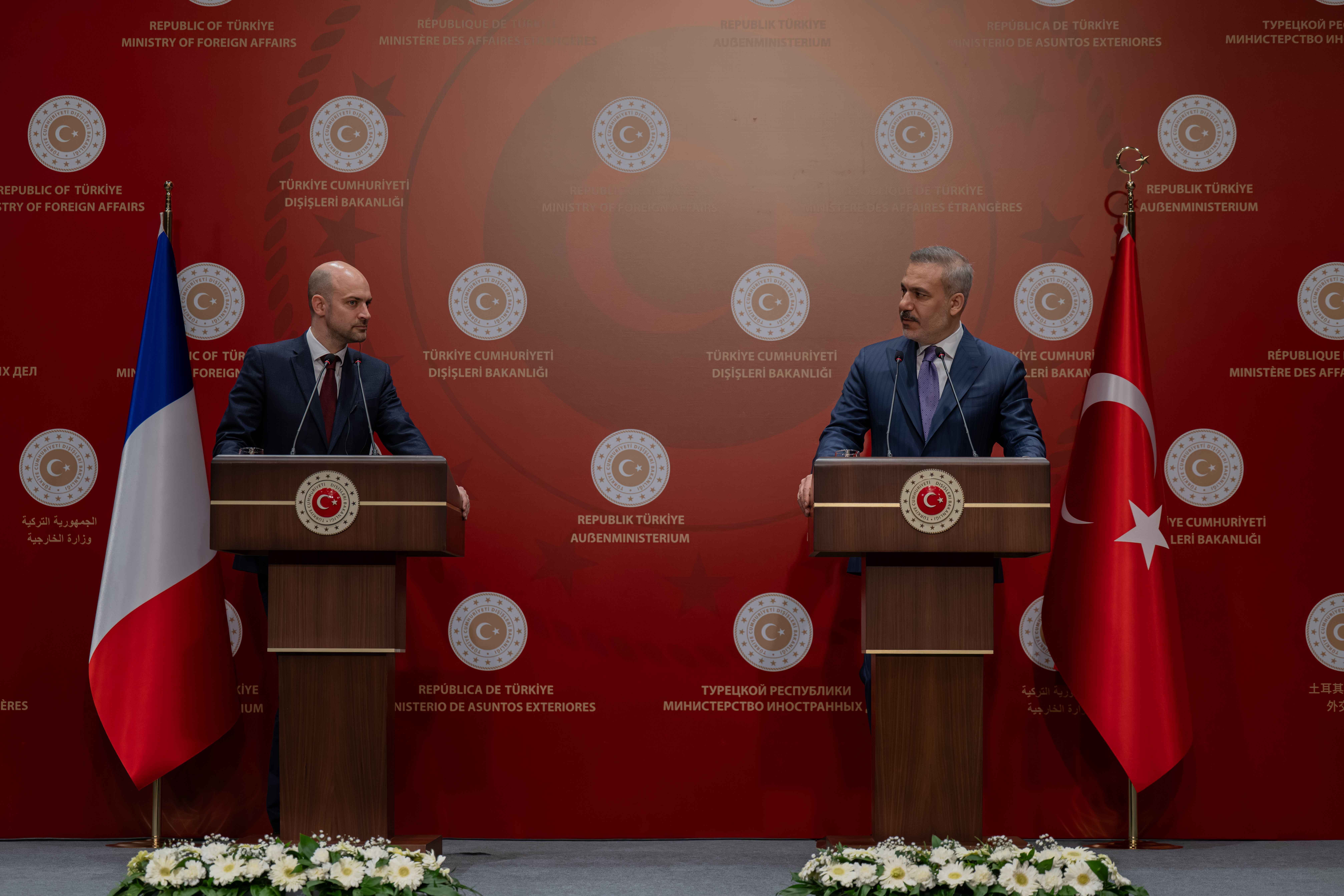 Foto: Türkiye Dışişleri Bakanı Hakan Fidan (sağda) ile Fransa Avrupa ve Dışişleri Bakanı Jean-Noel Barrot (solda), Ankara'daki görüşmelerinin ardından ortak basın toplantısı düzenledi.