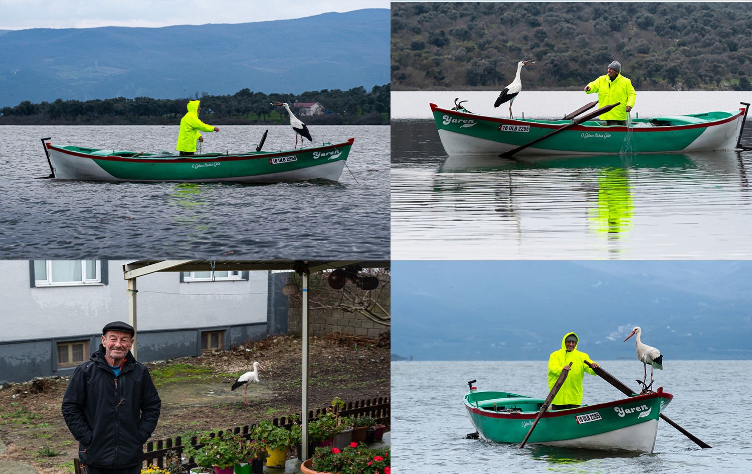 Eskikaraağaç Leylek Köyü’nde Yaren, Balıkçı Adem’in kayığına konarken, bu özel anlar Yaban Hayatı Fotoğrafçısı Alper Tüydeş tarafından ölümsüzleştirildi.