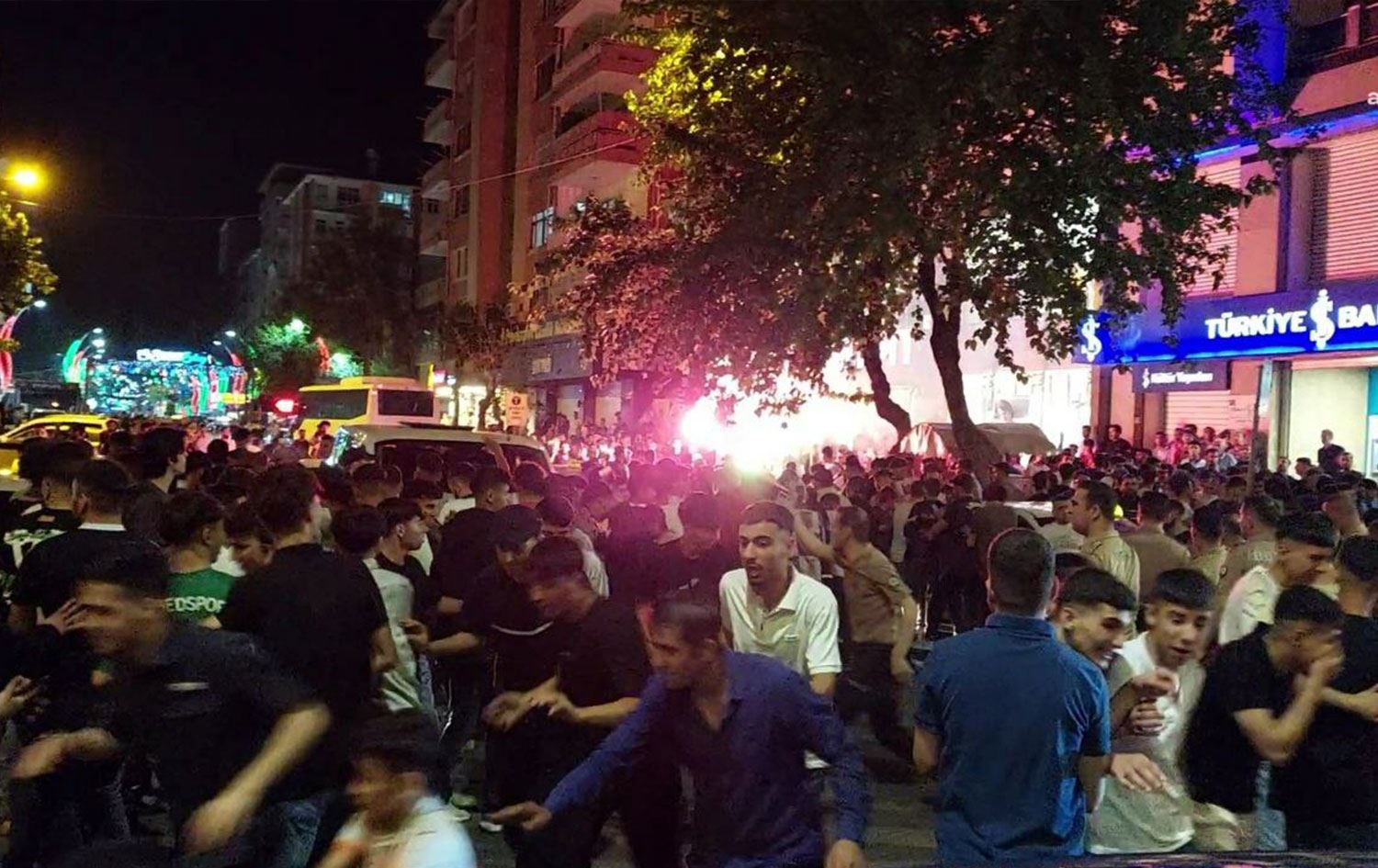 TÜMOSAN Konyaspor'u deplasmanda 3-1 mağlup ederek, Süper Lig 2023-2024 sezonu şampiyonu olan Galatasaray için Diyarbakır'da yapılan kutlamalarda, gergin anlar yaşandı. Güvenlik güçleri gruba biber gazıyla müdahale etti.