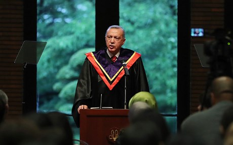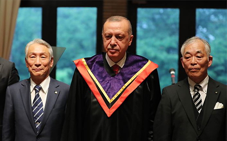 Erdoğan, fahri doktora unvanı için Mukogawa Kadın Üniversitesine, rektör ve senato üyelerine en kalbi şükranlarını sunarak, üniversitenin şahsına fahri doktora unvanı tevdi etmesinden büyük bir gurur duyduğunu, bu unvanı Türk-Japon dostluğunun yeni bir nişanesi olarak ömür boyunca gururla taşıyacağını söyledi.