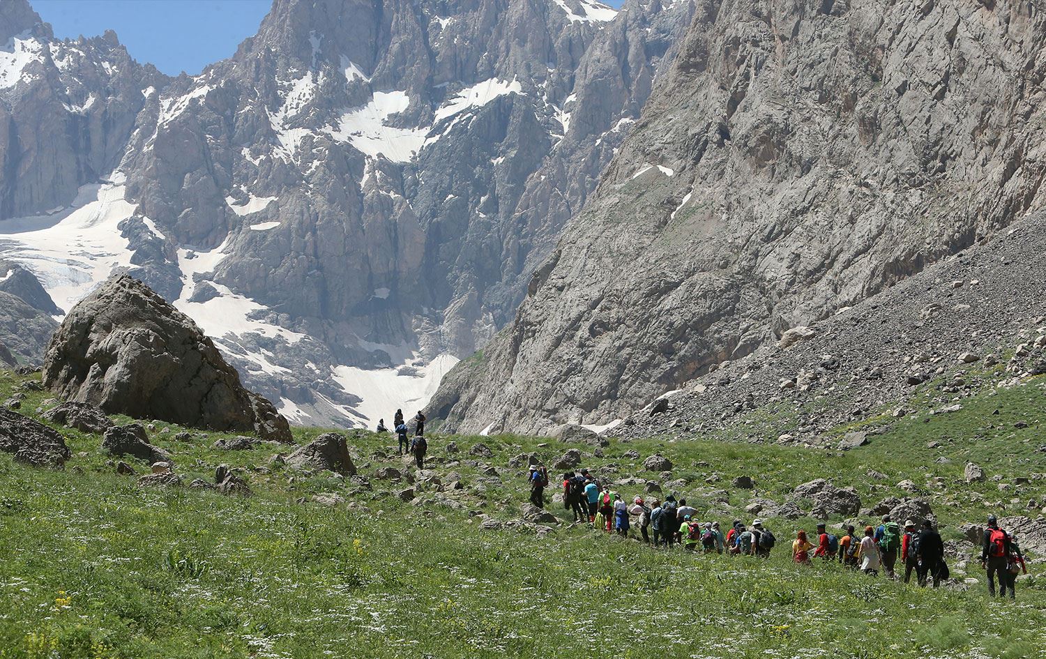 Van Vadi Doğa Sporları Kulübü Derneği üyelerinden oluşan 48 kişilik grup da buzulların bulunduğu dağların eteklerindeki vadide doğa yürüyüşü gerçekleştirdi.