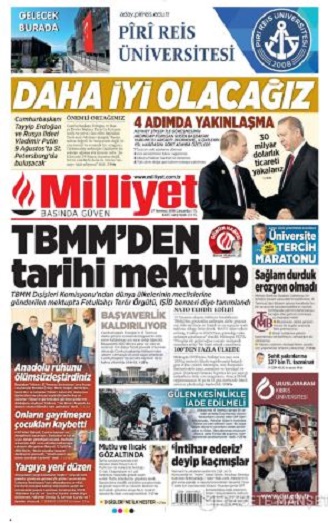 Milliyet: TBMM’DEN TARİHİ MEKTUP