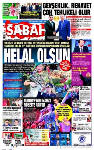 Cumhurbaşkanı Erdoğan: Siyasi yaşamımın en kritik anıydı. Devlet bu darbeyi şu anda def etmiştir ama henüz bitmiştir demiyorum. Eğer burada bir gevşeklik rehavet olursa çok daha tehlikeli olabilir. Normalleşme olursa OHAL uzatılmaz