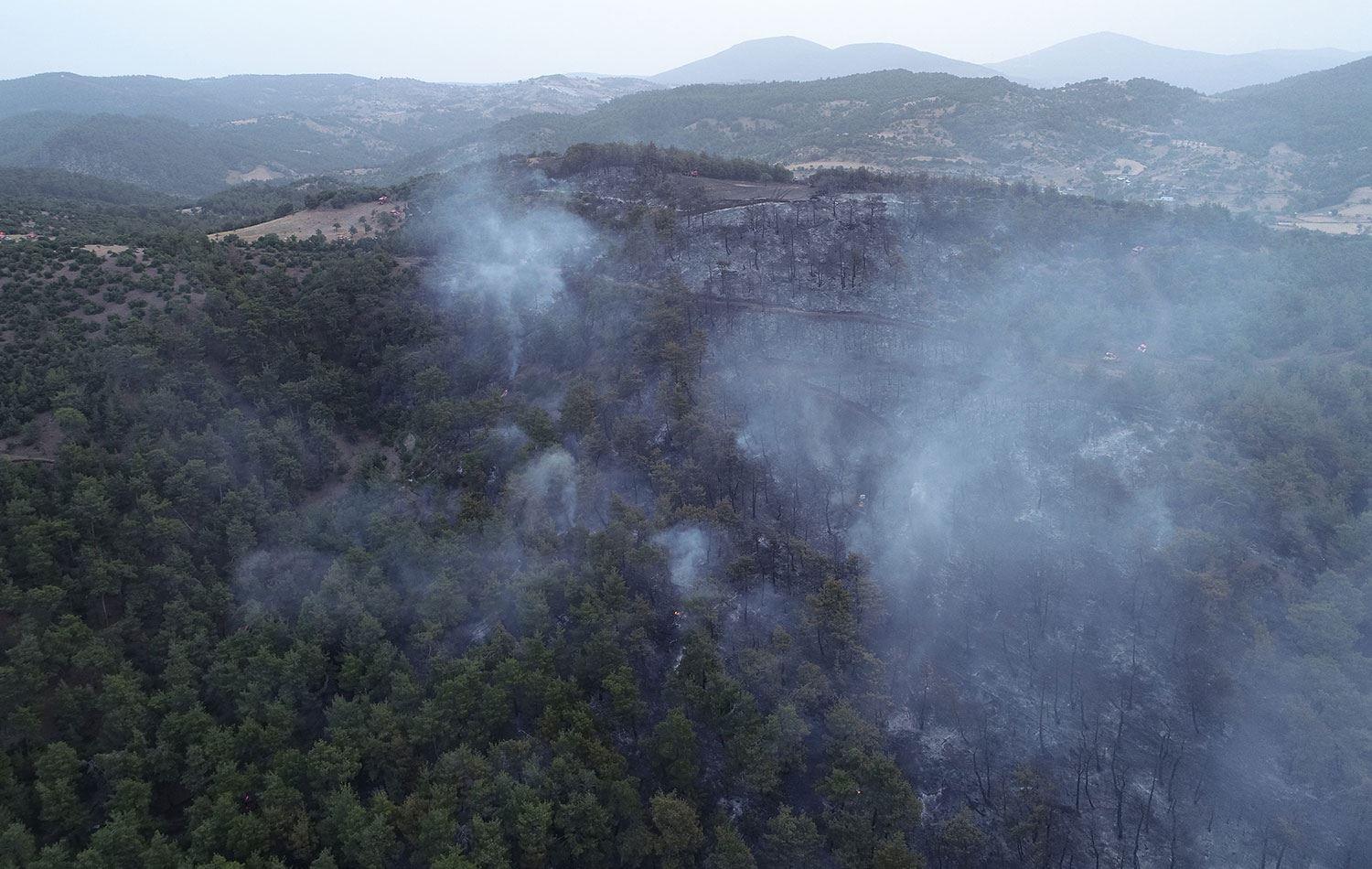 Öte yandan, yaklaşık 9 saattir süren yangında son durum, Anadolu Ajansı (AA) ekibi tarafından havadan dron ile görüntülendi.