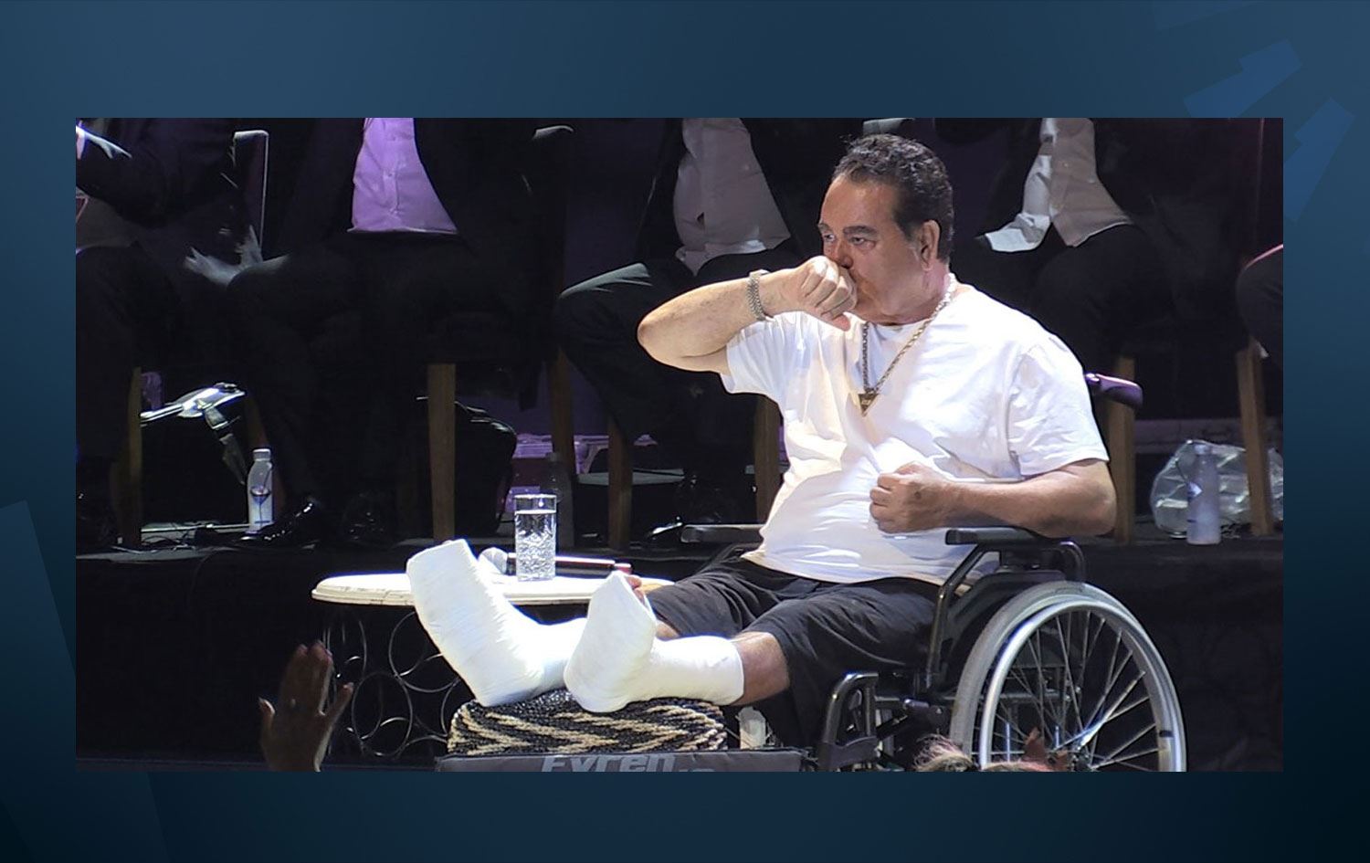 İki ayak tarak kemiğinde kırık tespit edilen Tatlıses, sahneye ayakları sargılı olarak tekerlekli sandalyede çıktı.