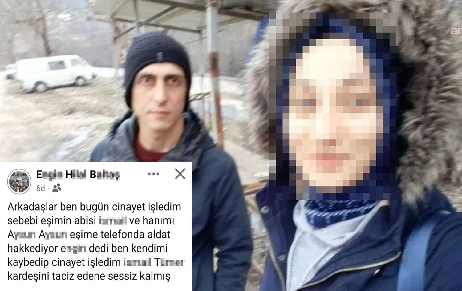 "Arkadaşlar ben bugün cinayet işledim. Sebebi, eşimin abisi İ. ve hanımı A. eşime telefonda 'Aldat, hak ediyor Engin' dedi. Ben kendimi kaybedip cinayet işledim. İ.T., kardeşini taciz edene sessiz kalmış."