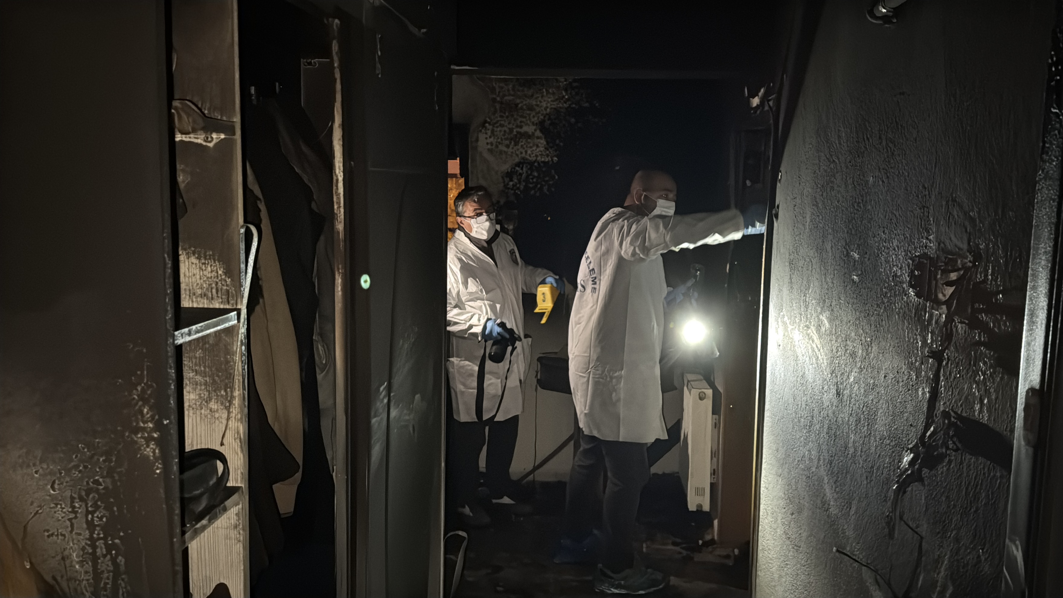 Yangının söndürülmesinin ardından daireden çıkarılan Çabuk'un cenazesi, morga götürüldü.