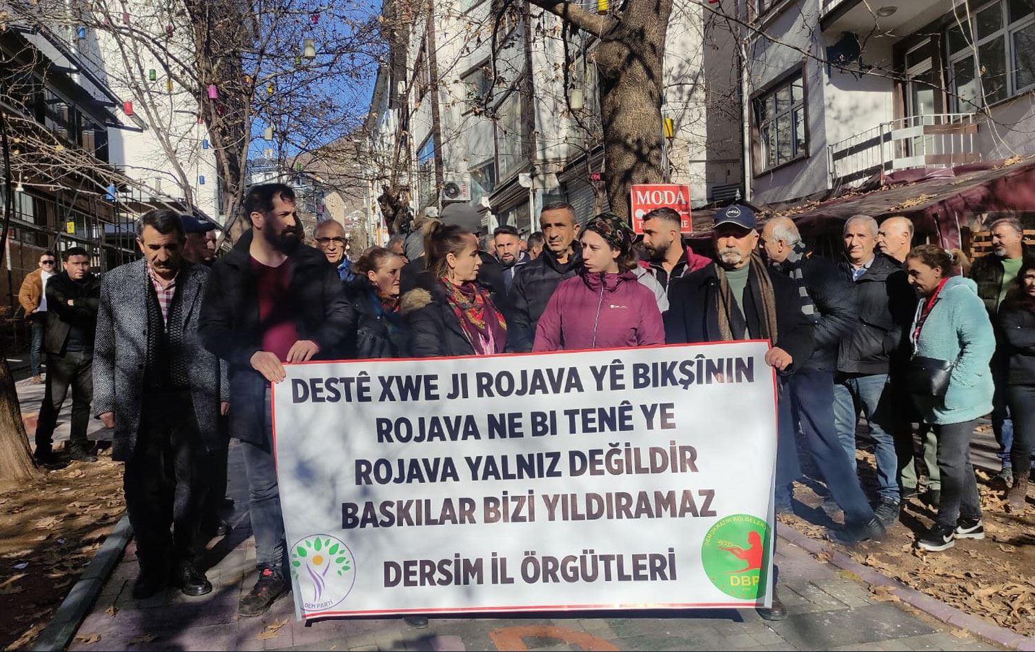 Sanat Sokağı'nda bir araya gelen DEM Parti Dersim İl Örgütü, Türk Silahlı Kuvvetleri’nin Rojava'ya düzenlediği ve 4 sivilin hayatını kaybetmesi ile sonuçlanan saldırıyı protesto etmek amacıyla basın açıklaması düzenlemek istedi.