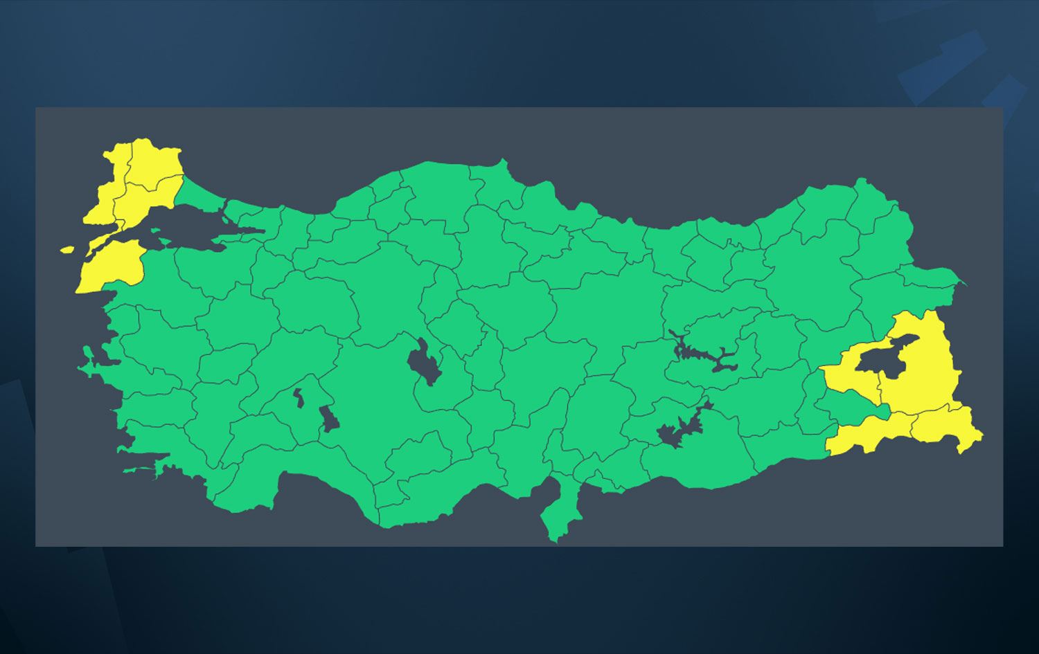 Edirne, Kırklareli, Çanakkale ve Tekirdağ’a da sarı kodlu uyarı verildi.