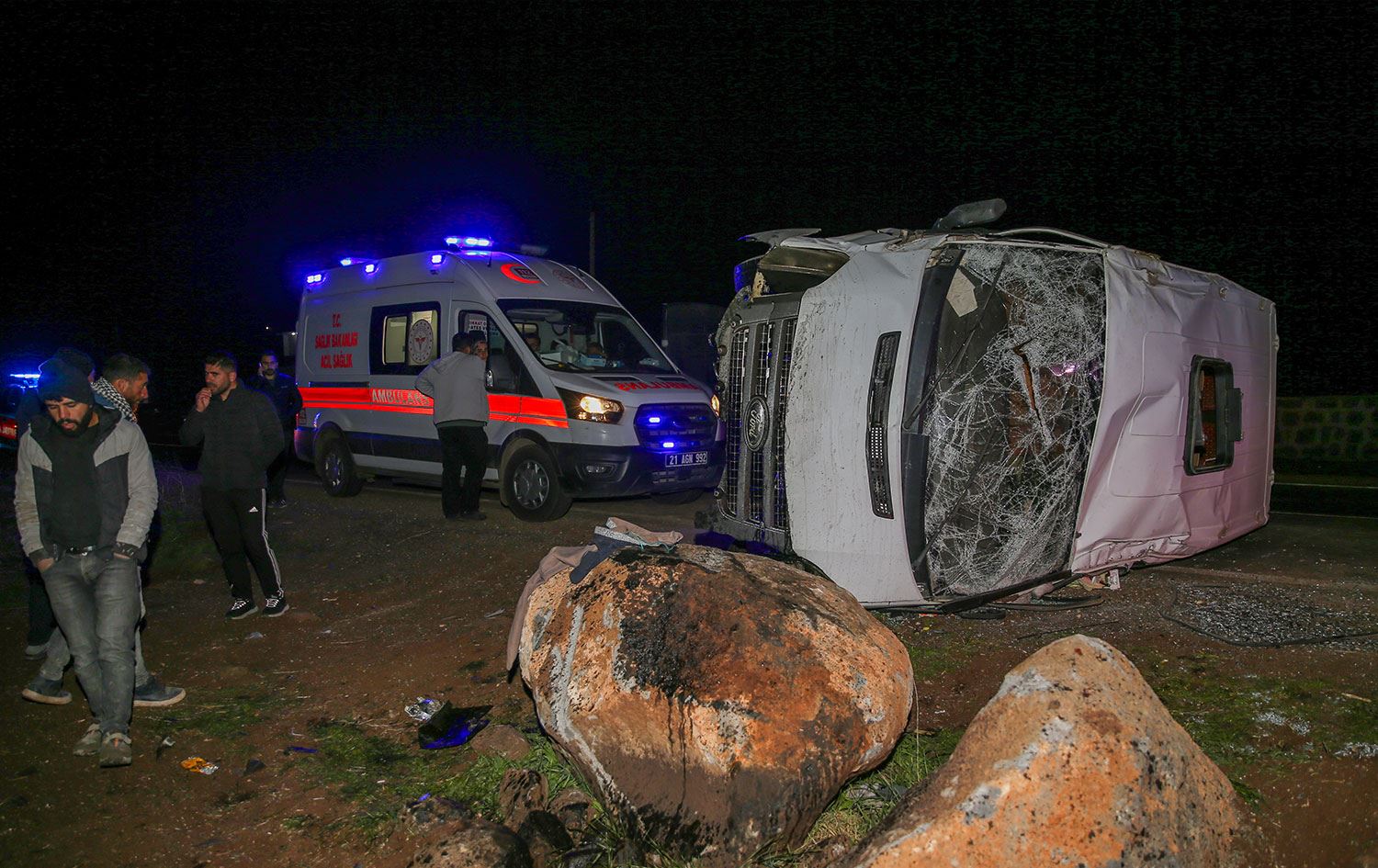 Diyarbakır'da inşaat işçilerini taşıyan minibüsün devrildiği kazada 16 kişi yaralandı