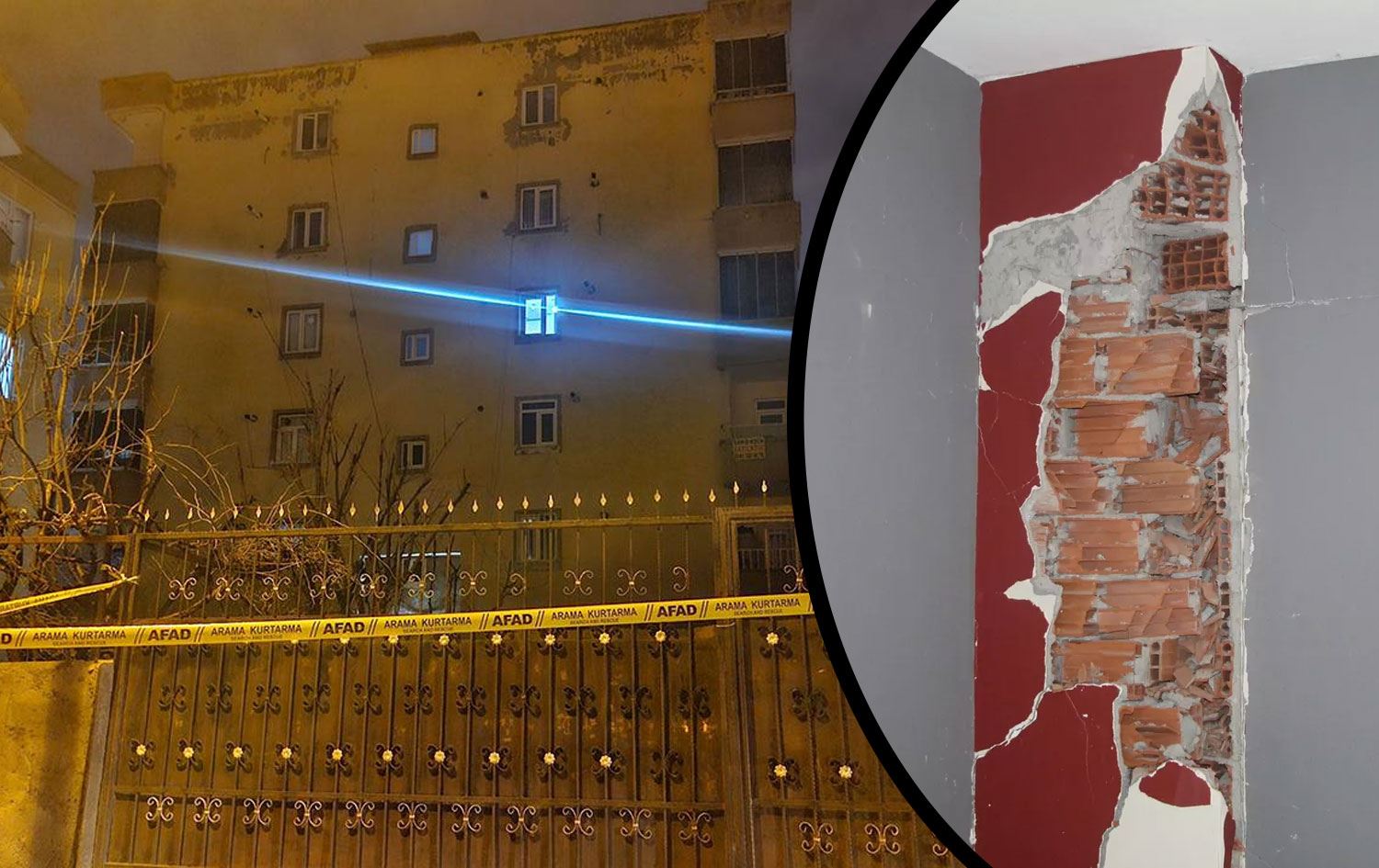 Gece saatlerinde Bağlar ilçesi Bağcılar Mahallesi 1061’inci Sokak'taki 6 katlı Habib Apartmanı’nda kolonlardan ses geldiğini fark eden bina sakinleri yetkililere haber verdi.