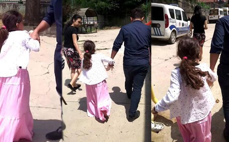 Pedagog, küçük kızla yaptığı görüşmenin ardından tutulan tutanağa, 'Bu şekilde götürülmesi uygun değildir' yazdı. Annenin ısrarı üzerine Z.Y.'nin kolundan tutan icra memuru, ağlayan kızı zorla polis aracına bindirdi.