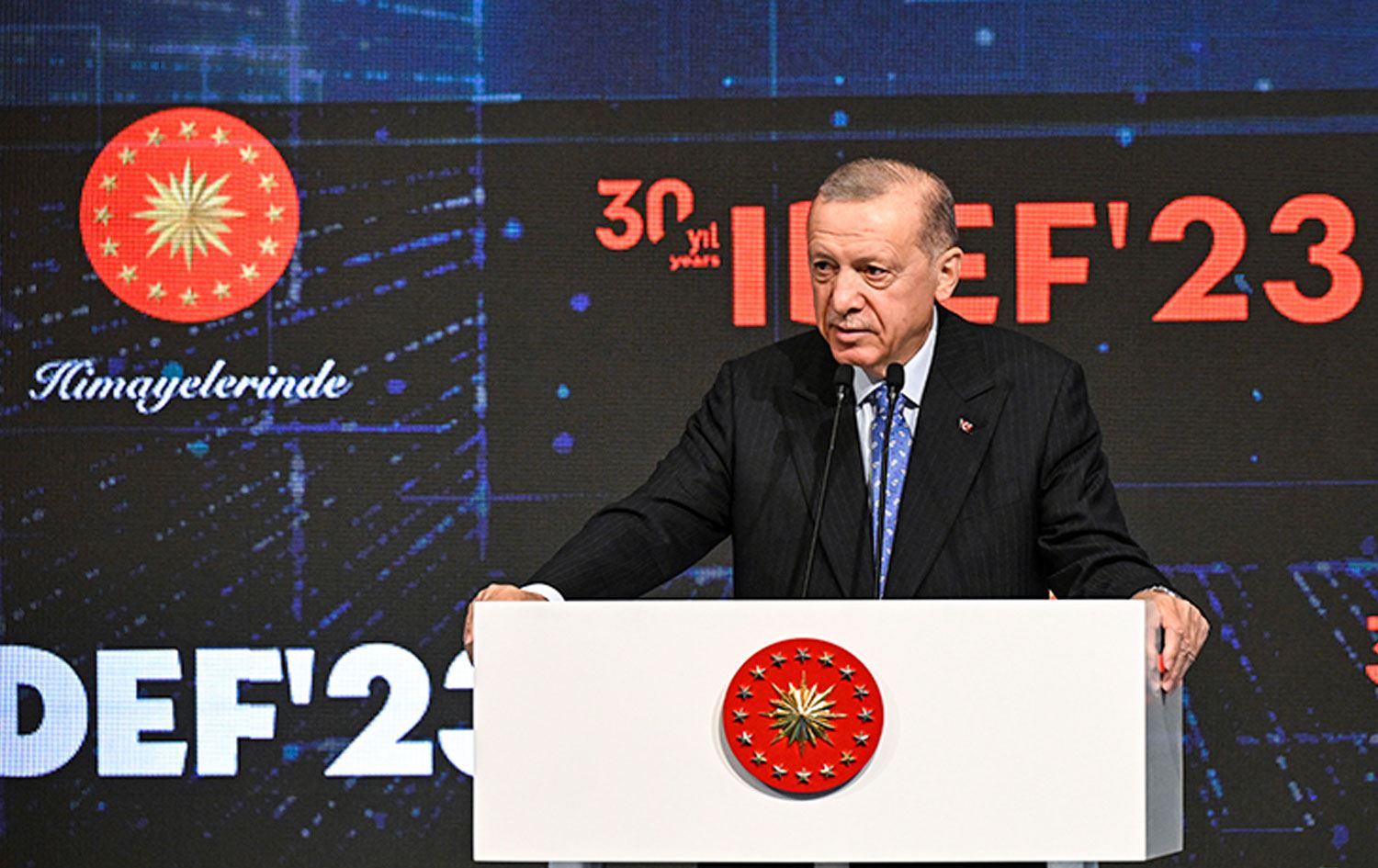 Erdoğan, İstanbul TÜYAP Fuar ve Kongre Merkezi'nde düzenlenen 16. Uluslararası Savunma Sanayii Fuarı (IDEF'23) Kapanış Töreni'ndeki konuşmasında, açılış törenine video mesaj ile katıldığını fuarın kapanışında özellikle bulunmayı arzu ettiğini anlattı.
