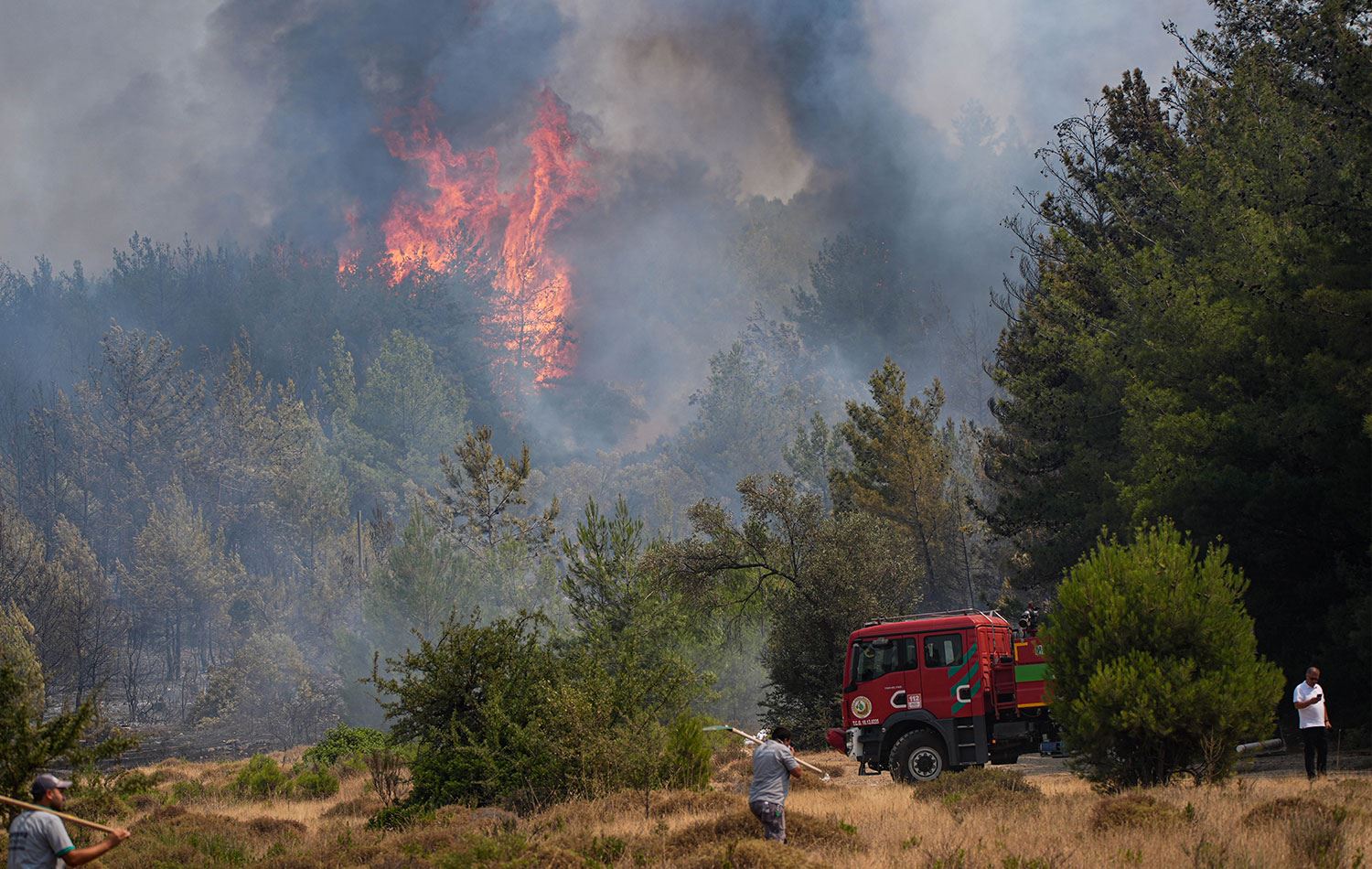 Bazı mahalle sakinleri traktörleriyle su taşıyarak çalışmalara destek veriyor. İl Emniyet Müdürlüğüne bağlı toplumsal olaylara müdahale araçları (TOMA) da alevleri söndürmek için çalışıyor.