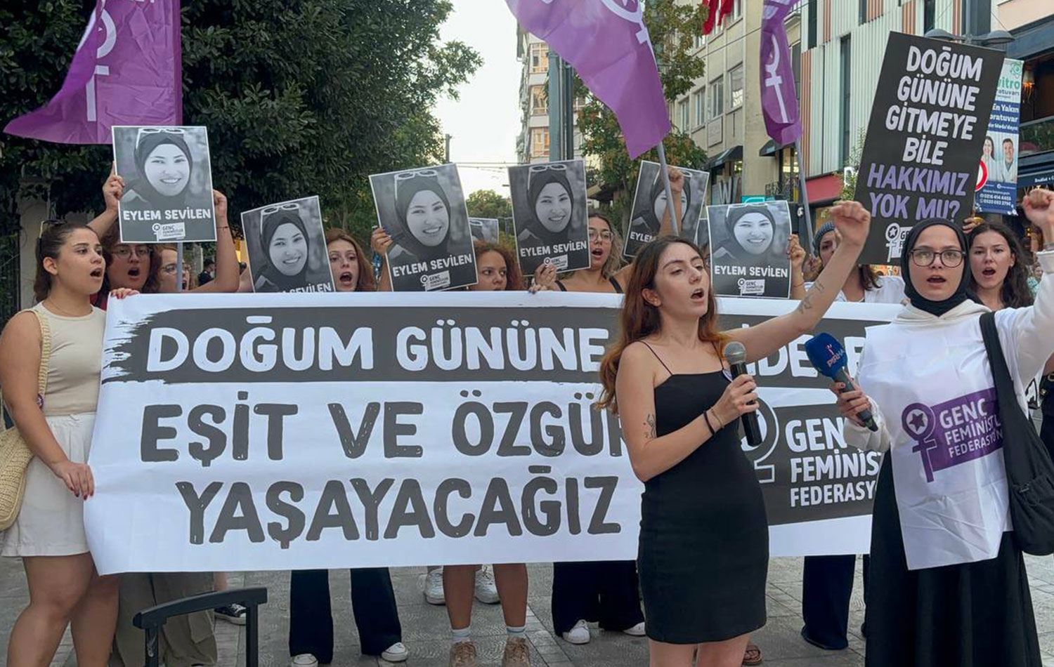 “Doğum gününe de gideceğiz. Eşit ve özgür yaşayacağız” yazılı pankartın açıldığı protestoda kadınlar, Sevilen’in resminin olduğu dövizleri taşıdı.