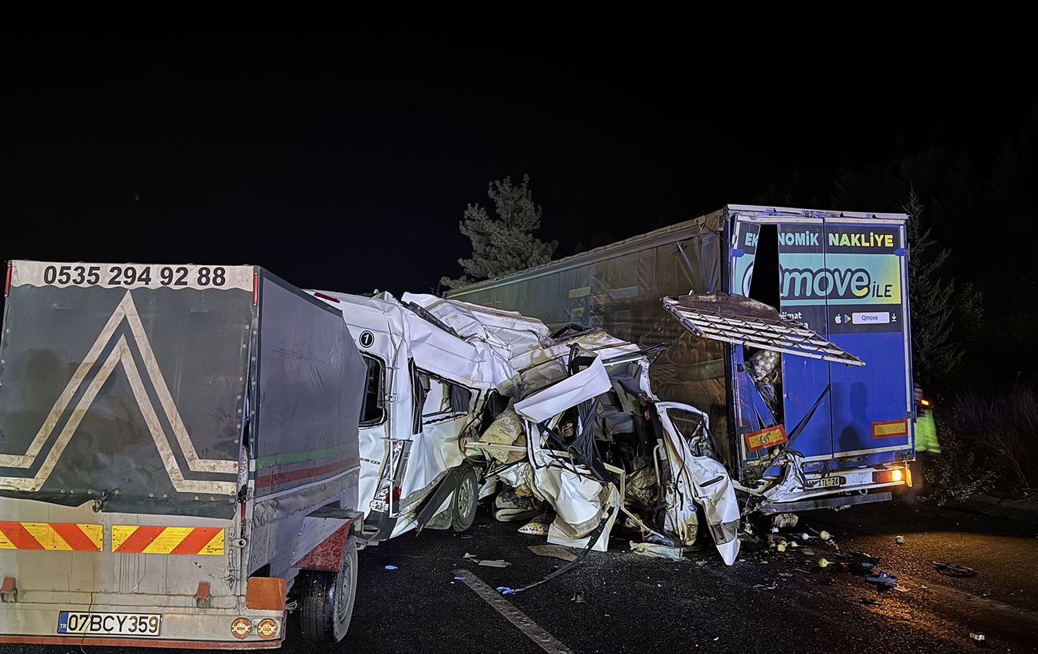 Tarım işçilerini taşıyan M.G'nin kullandığı 07 BCY 359 plakalı minibüs, Ankara-Tarsus Otoyolu'nun Damlama mevkisinde B.A. idaresindeki 42 ASD 781 plakalı tırın 42 ATL 24 plakalı dorsesine arkadan çarptı.