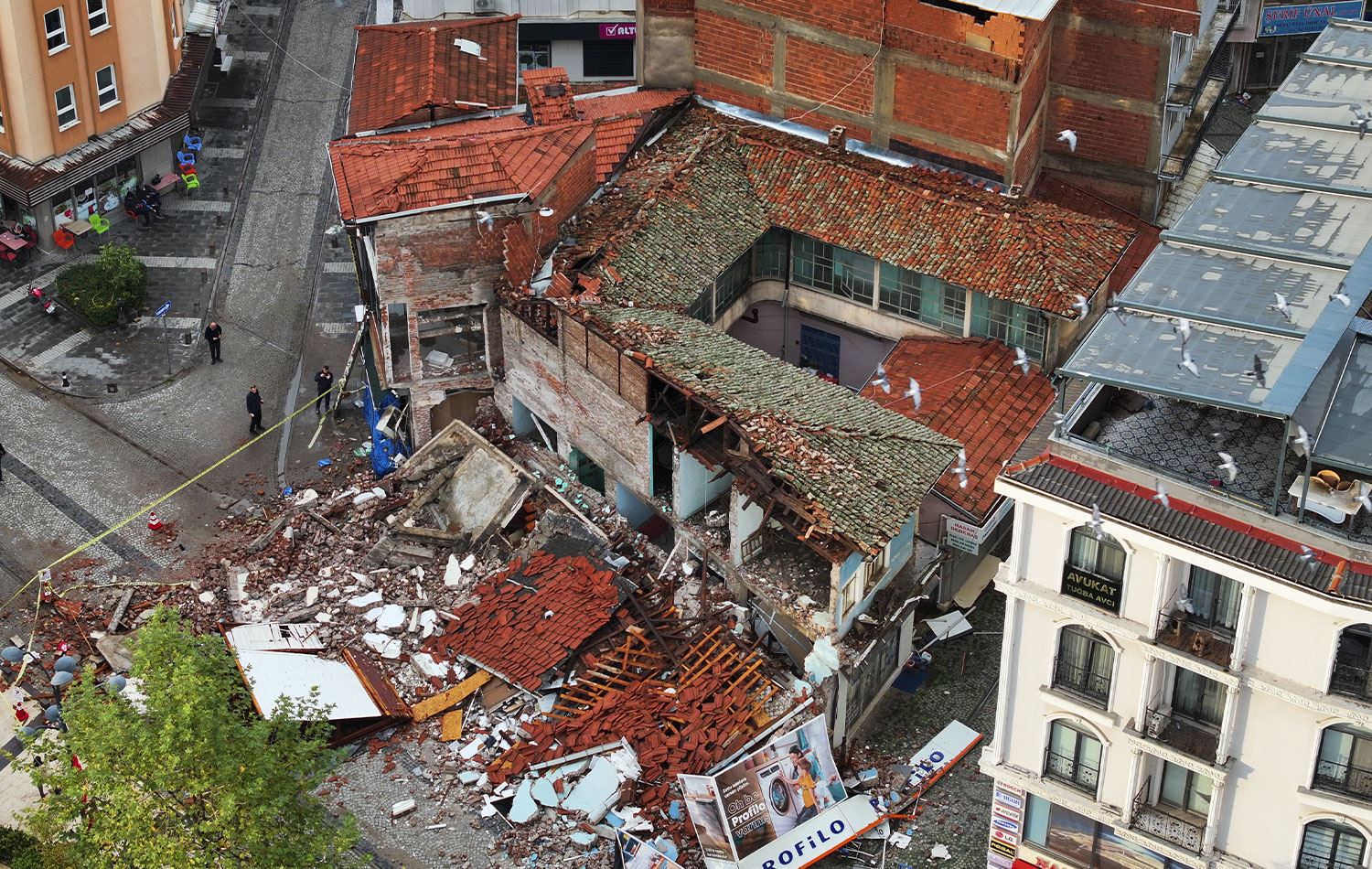Balıkesir'in Sındırgı ilçesinde 6.1 büyüklüğündeki depremin ilçede oluşturduğu hasar ve yıkım havadan görüntülendi. / AA