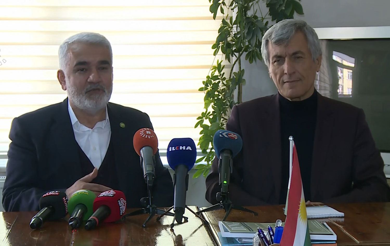 Diyarbakır (Rûdaw) - HÜDAPAR Genel Başkanı Yapıcıoğlu, PSK Genel Başkanı Bayram Bozyel'e tebrik ziyaretinde bulundu. İki lider Kürt sorununun demokratik ve barışçıl yöntemlerle çözümüne vurgu yaptı.