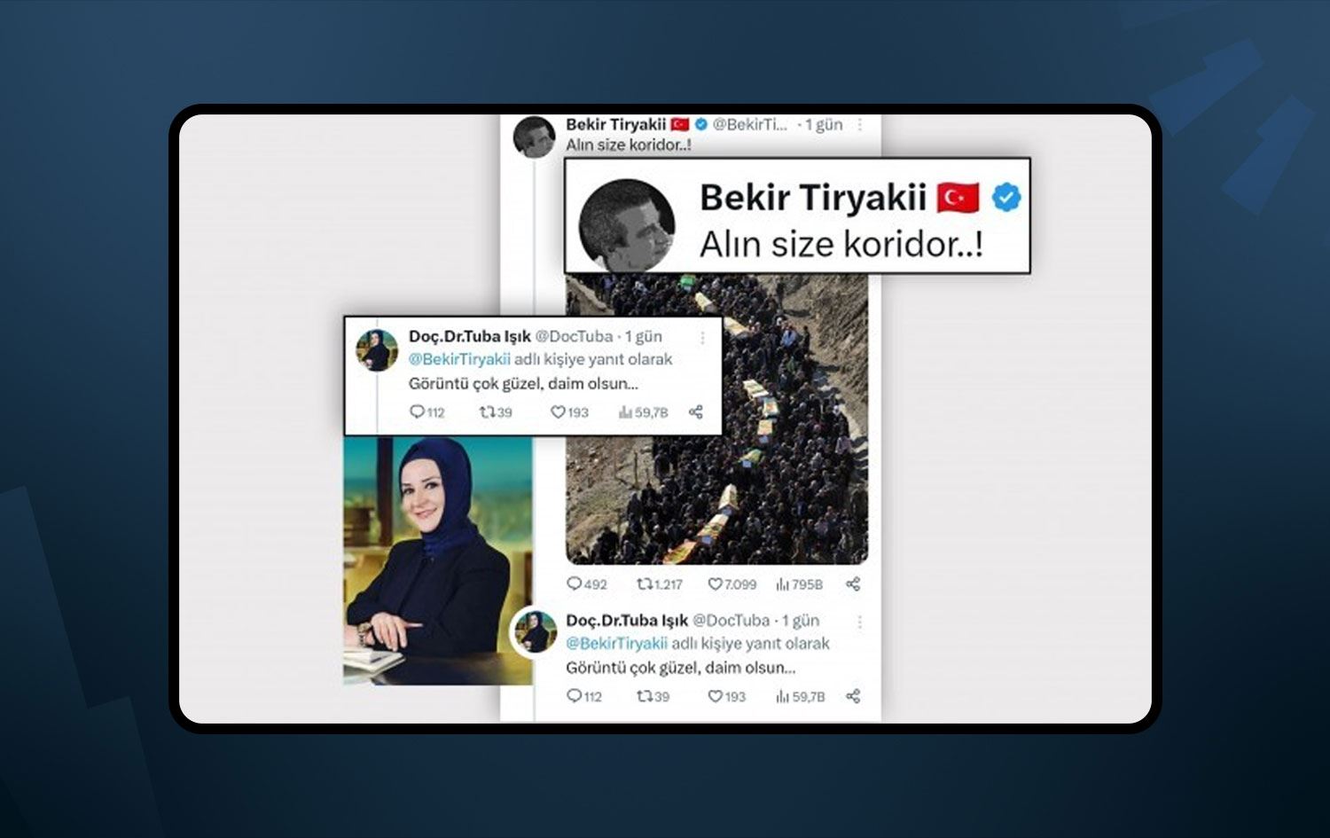 Anadolu 2071 Sosyal Medya Derneği Başkanı Bekir Tiryaki, X (eski ismiyle Twitter) hesabından Roboskililerin cenaze töreninde çekilen fotoğrafı, “Alın size koridor” notuyla paylaştı.