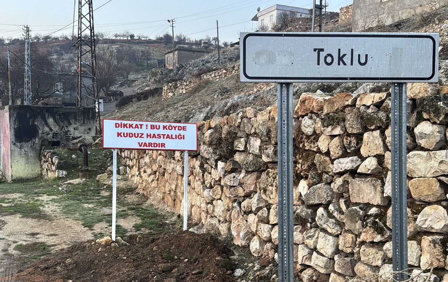 Köyün girişine "Dikkat! Bu köyde kuduz hastalığı vardır" tabelası asıldı.