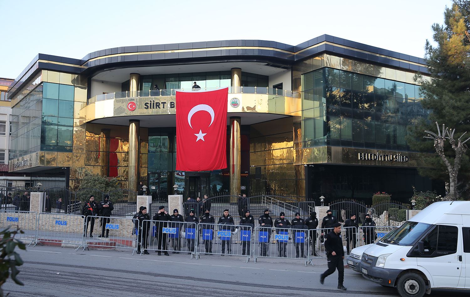 Öte yandan sabah saatlerinde Siirt Belediyesi önüne gelen polis ekipleri, belediye binasını bariyerler kapattı.