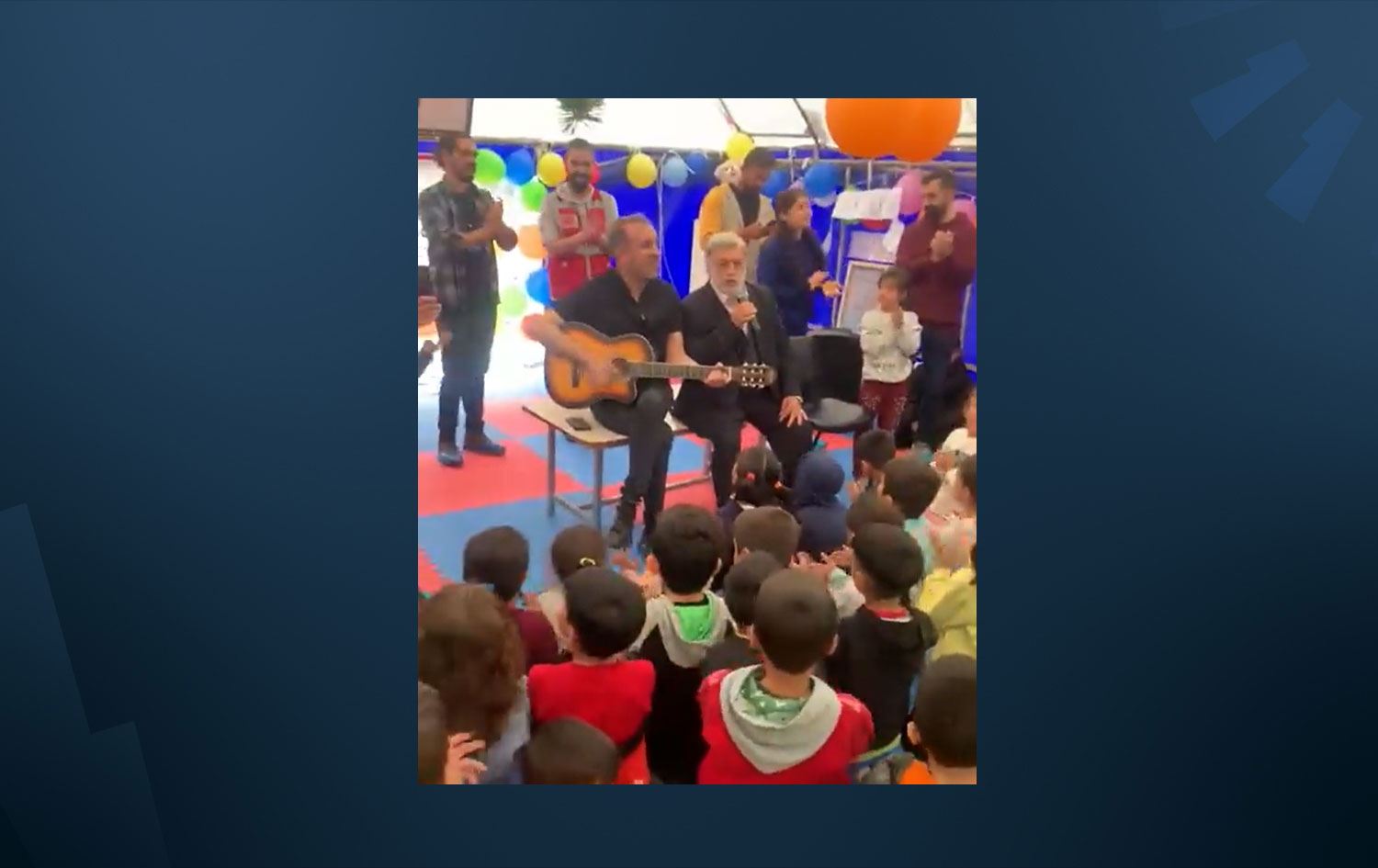 AHBAP Derneği Başkanı şarkıcı Haluk Levent, depremin vurduğu Adıyaman'da depremzede çocuklara moral vermek adına mini bir konser düzenledi.