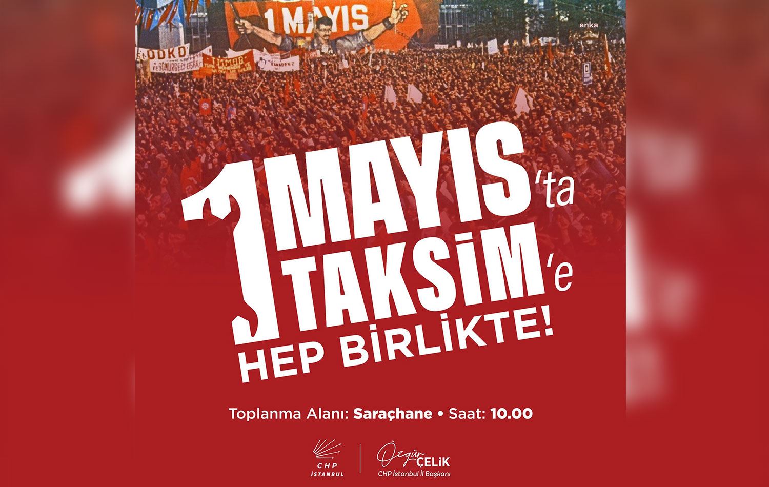 CHP İstanbul İl Başkanı Özgür Çelik, 1 Mayıs İşçi Bayramı için Taksim’e yürüme çağrısı yaptı. Çelik’in X hesabından yaptığı duyuru şöyle: