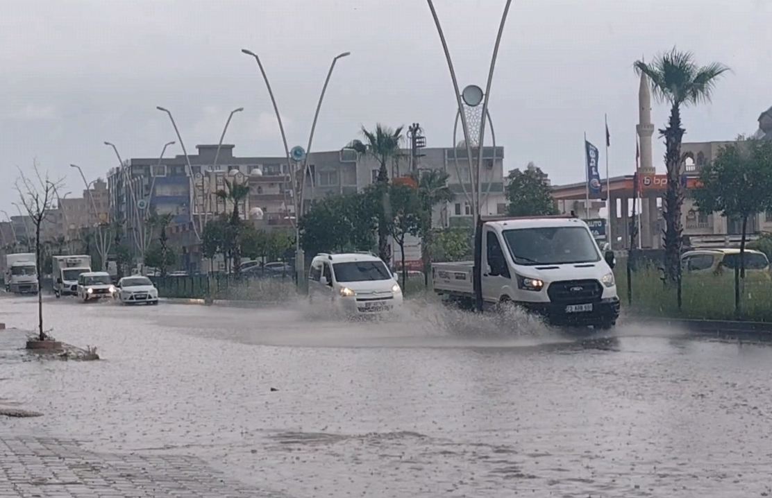 Şırnak'ın Silopi ilçesinde etkili olan sağanak ve dolu nedeniyle cadde ve sokaklarda oluşan su birikintileri ulaşımda aksamalara yol açtı. / AA