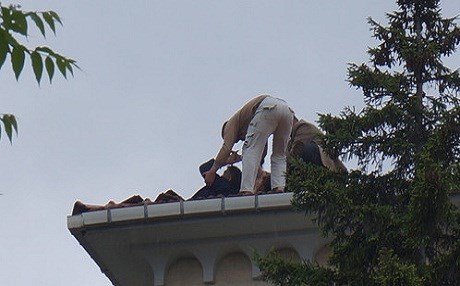 Şahsı fark eden elçilik personeli hemen çatıya çıktı. Çalışanlar, aşağı atlamak isteyen kişiye engel olmaya çalıştı. Bir personel şahsın kolundan tutarken, bir bayan personel de şahsı ikna etmeye çalıştı.