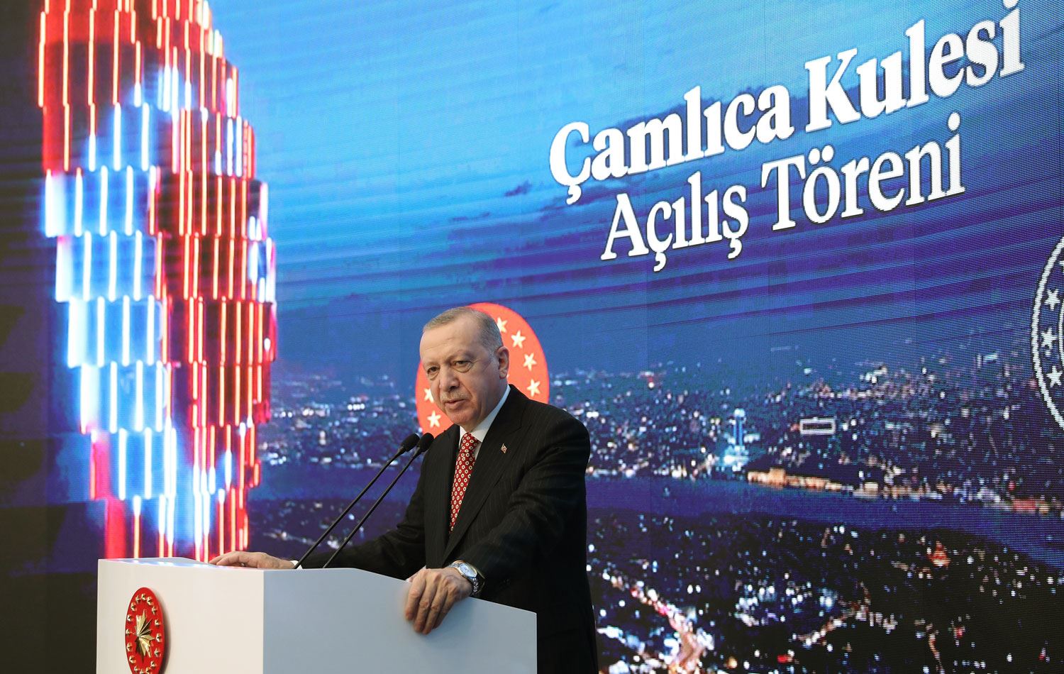 “Ayasofya'ya bir yıl önce açtık, Taksim Cami'nin açılışını dün yaptık. Bugün de Çamlıca Kulesi'nin açılışını yapıyoruz. Bitmedi. Şimdi inşallah Haziran ayının sonunda Kanal İstanbul'u şehrimize kazandırmak üzere temeli atıyoruz. Rahatsız olanlar var, olacaklar. Varsın olsunlar. Kanal İstanbul üzerinden 6 tane köprü göreceksiniz. Sağında ve solunda iki şehir inşa edeceğiz. İstanbul bir başka güzel olacak. Kanal İstanbul'u İstanbul'a kazandırdığımızda İstanbul'un hem coğrafi hem stratejik hem tabii güzelliği bir kat daha artacaktır. CHP, Ümraniye çöplüğünün patlamasına seyirci kaldı. Onlar patlattı bir yaptık. Şimdi orada spor tesisleri var.