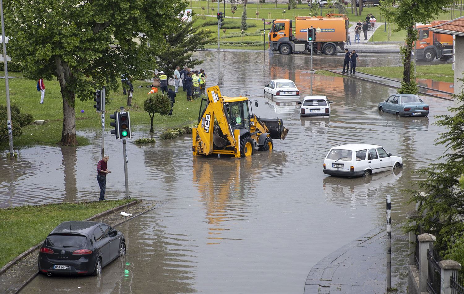 Bu sırada trafikte seyir halinde olan araçlar yollarda biriken suyun yükselmesi nedeniyle ilerleyemedi.