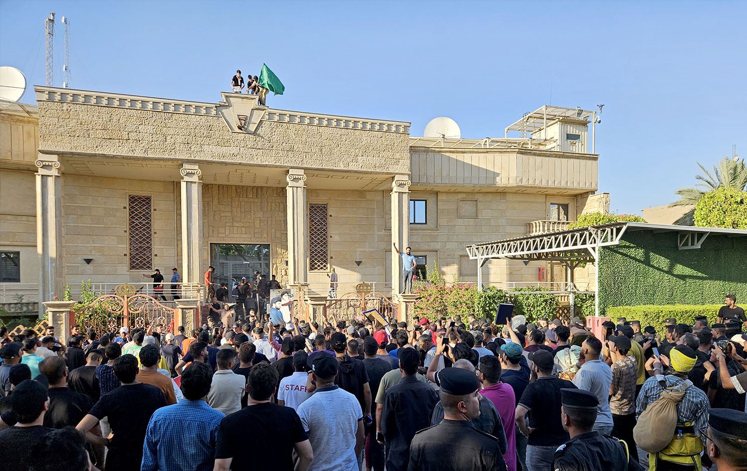 Kur'an-ı Kerim'in yakılma eylemi nedeniyle tepki gösteren Iraklılar, #İsveç'in Bağdat Büyükelçiliğini bastı pic.twitter.com/67hAtRoVEB