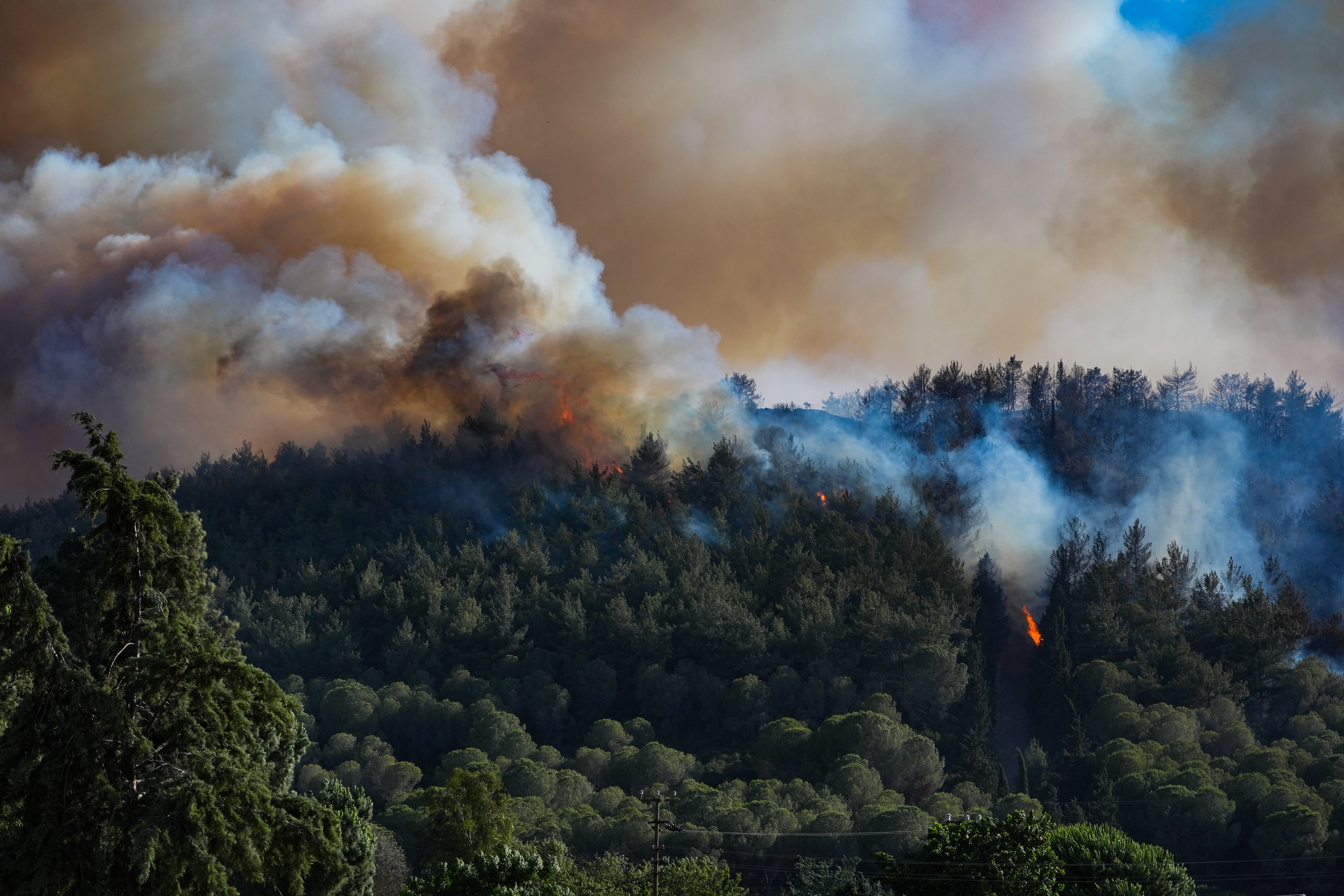 Ekipler, havadan ve karadan müdahaleyle yangını kontrol altına almaya çalışıyor.