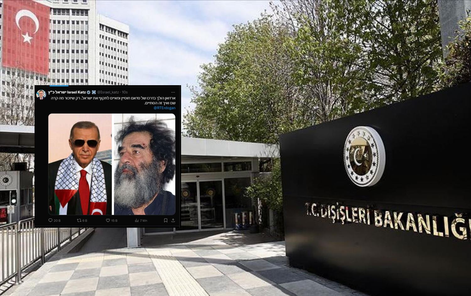 Katz X hesabından yaptığı açıklamasında, Irak'ın idam edilen eski lideri Saddam Hüseyin'i hatırlatarak, "Erdoğan, Saddam Hüseyin'in izinden gidiyor ve İsrail'e saldırı tehdidinde bulunuyor. Orada ne olduğunu ve nasıl bittiğini hatırlamasına izin verin” ifadelerini kullandı.