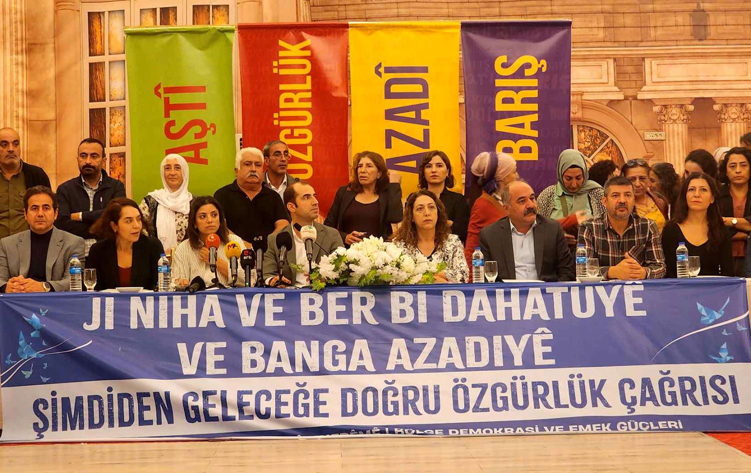 Bugün ise Diyarbakır’da Demir Otel’de aralarında DBP, HEDEP, DTK, TJA, MEBYA-DER, TUHAY-DER ve ÖHD’nin olduğu 172 siyasi yapı ve kuruluş, “Şimdiden Geleceğe Doğru Özgürlük Çağrısı” başlığını taşıyan bir açıklama yapıp deklarasyonu kamuoyuna duyurdu.