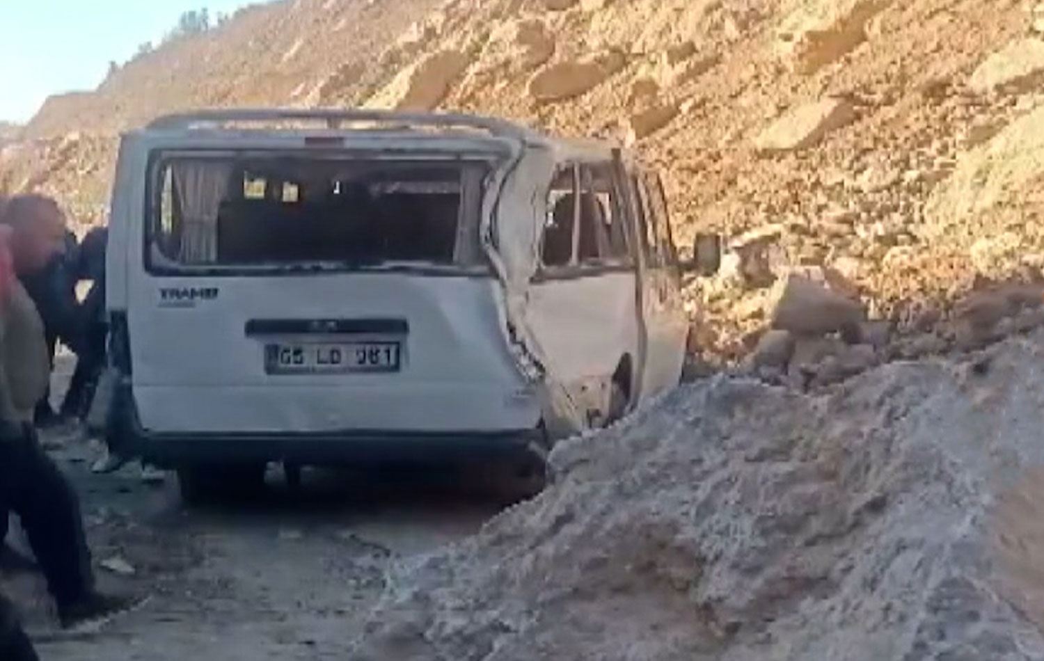 DHA’nın haberine göre içinde beş kişinin bulunduğu ve sürücüsünün ismi öğrenilmeyen minibüs hasar gördü.