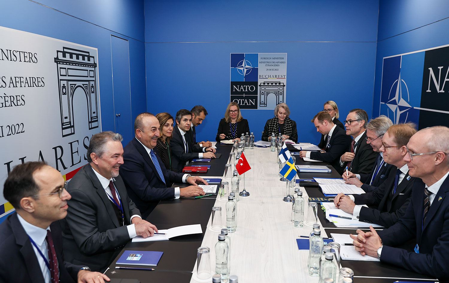 Çavuşoğlu, İsveç Dışişleri Bakanı Tobias Billström ve Finlandiya Dışişleri Bakanı Pekka Haavisto ile NATO Dışişleri Bakanları Toplantısı için bulunduğu Bükreş'te görüştü.