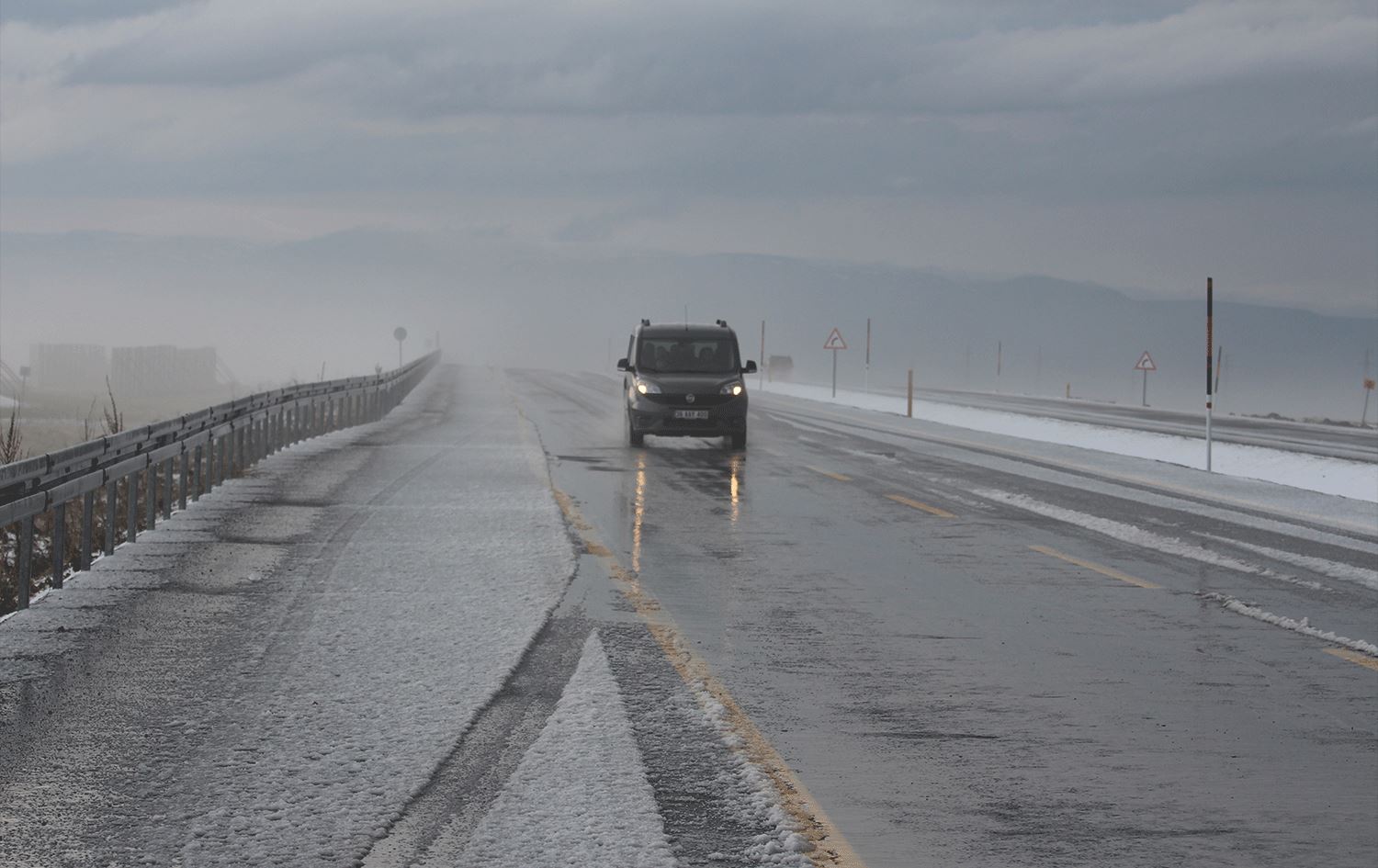 Digor-Kars kara yolunun Hanlar Geçidi beyaza bürünürken sürücüler kayganlaşan yolda ilerlemekte güçlük çekti.