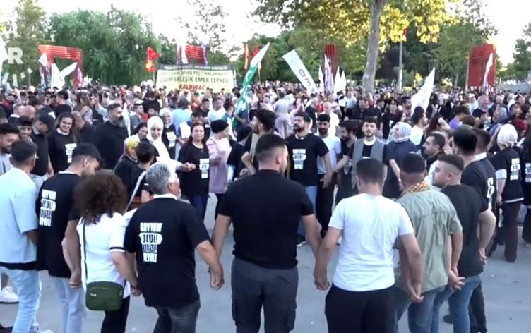 İstanbul'da yaşayan binlerce Kürt, olağanüstü güvenlik önlemleri altında miting alanında toplanarak üzerinde "Kayyım defol" yazılı tişörtler giyerek uygulamayı protesto etti.