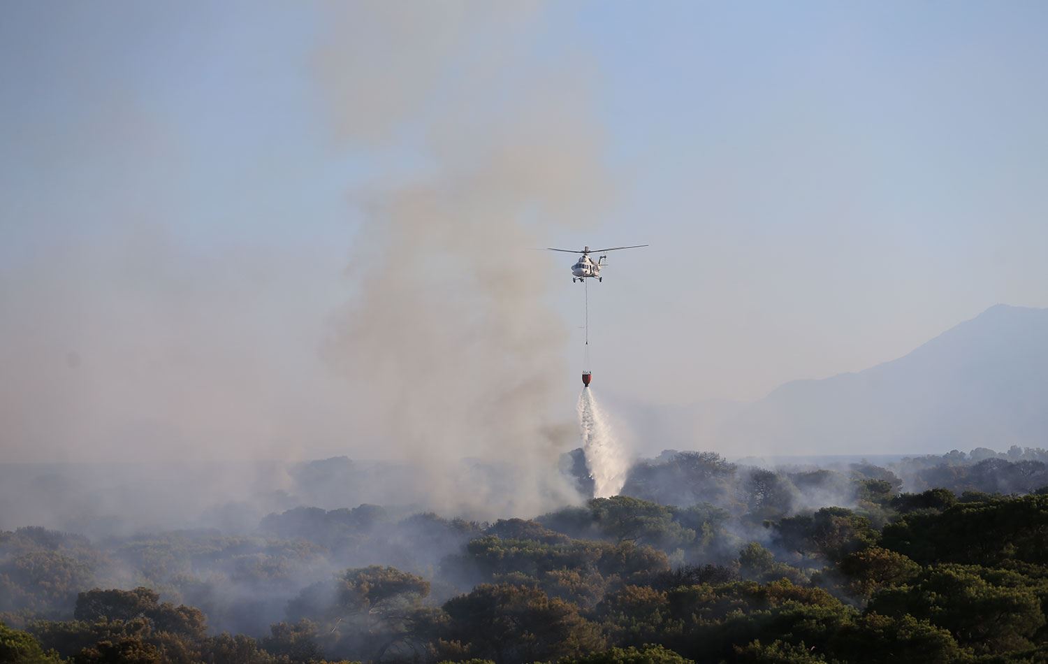 Ekipler, alevlerin bölgedeki evlere ulaşmaması için yoğun çaba sarf etti. Karadan ve havadan 4.5 saat süren yoğun müdahalenin ardından yangın kontrol altına alındı.