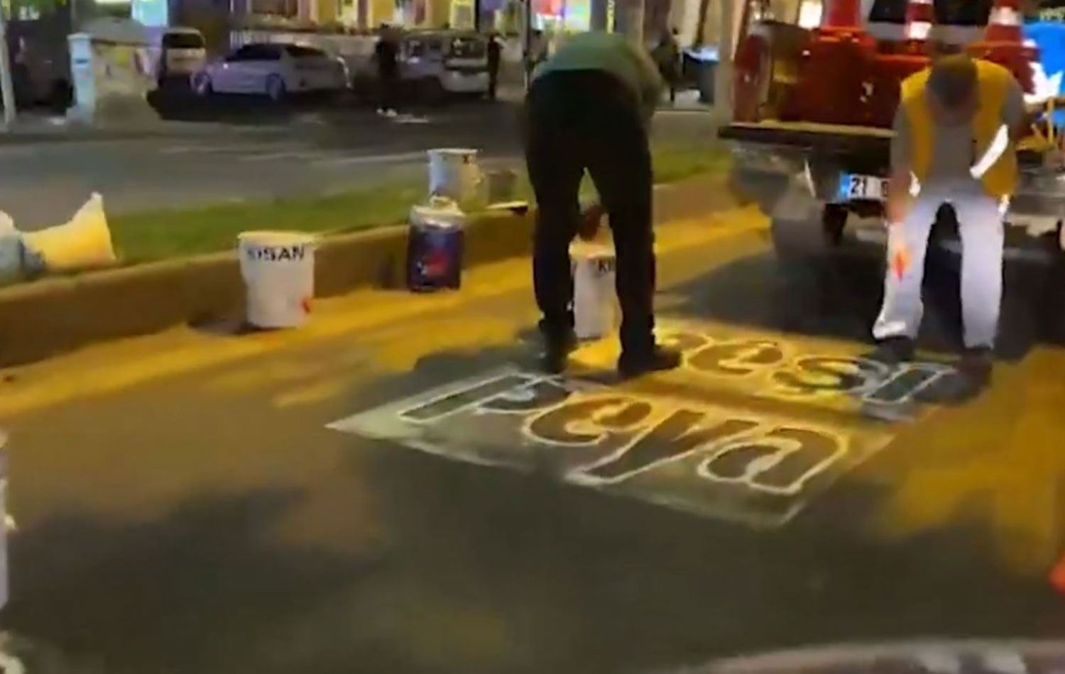 Sosyal medyada paylaşılan görüntülerde görevlilerin yeni yazıları yazdığı görülüyor.