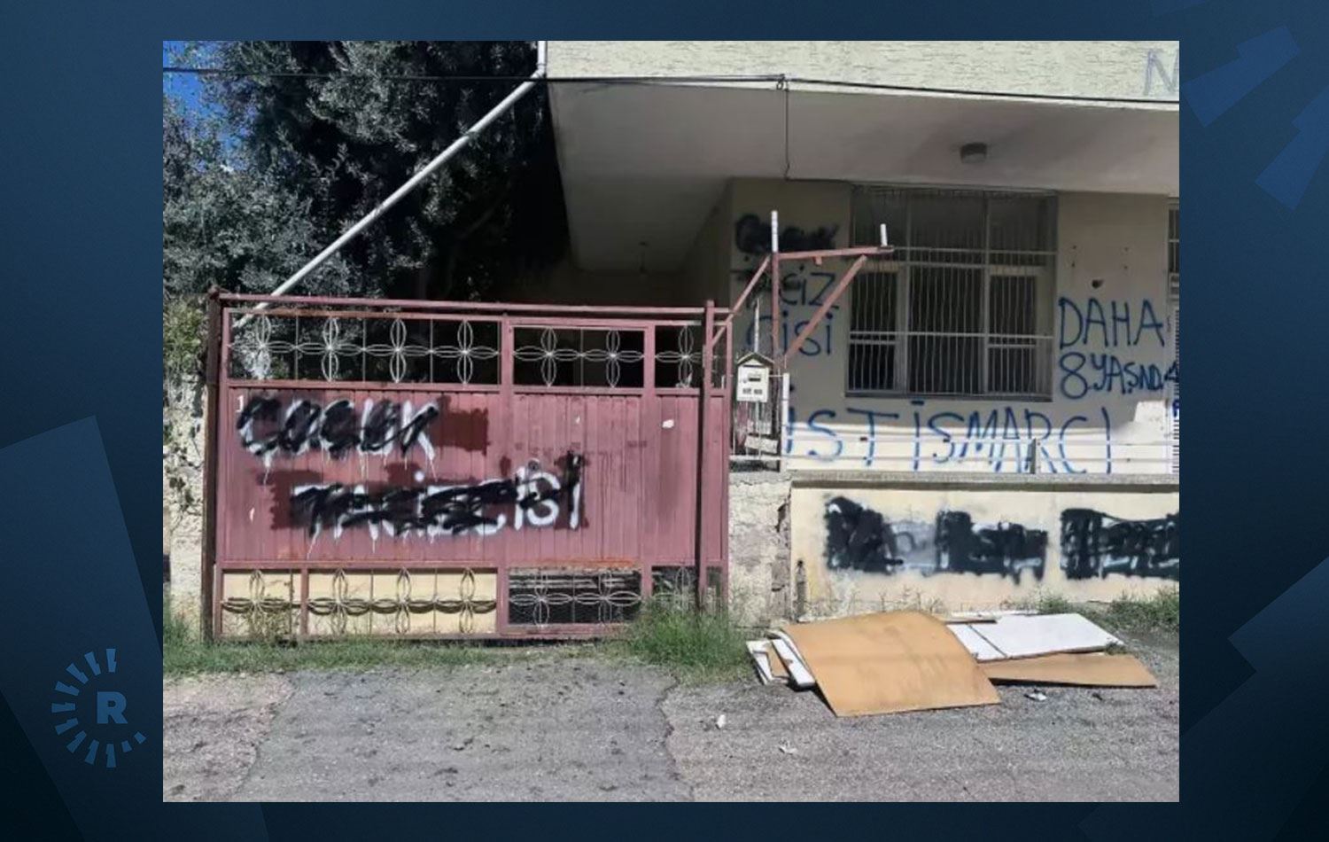 Zanlının evi, kimliği belirsiz kişiler tatafından taşlanırken evinin duvarlarına da “İstismarcı”, “Çocuk tacizcisi”, “Pislik”, “Daha 8 yaşında” gibi yazılar yazdı.