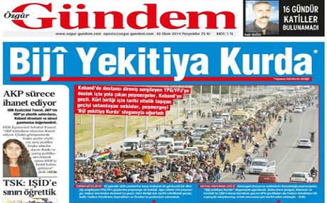 Özgür Gündem gazatesi ise, Peşmerge Güçleri’nin Türkiye’ye girişini, “Biji Yekitiya Kurda” (Yaşasın Kürt Birliği) başlığıyla manşetten verdi.