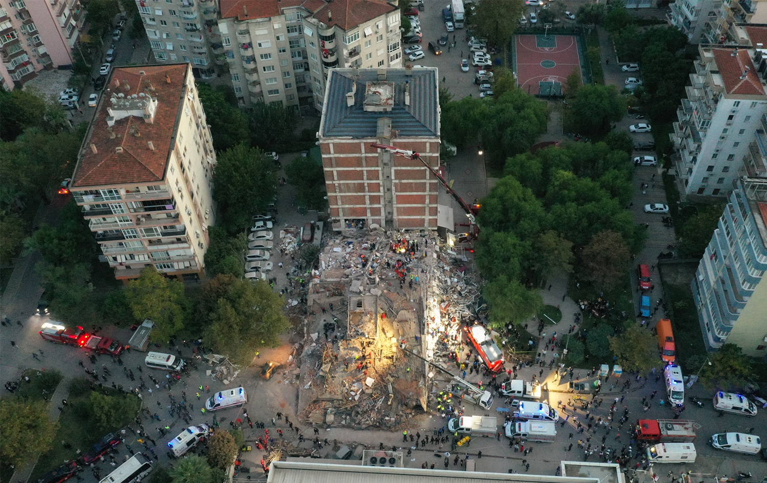 Kentte Bayraklı ve Bornova ilçelerinde yüksek katlı bazı binalar yıkıldı. Enkaz altında kalanların kurtarılması için çalışmalar yürütülüyor.