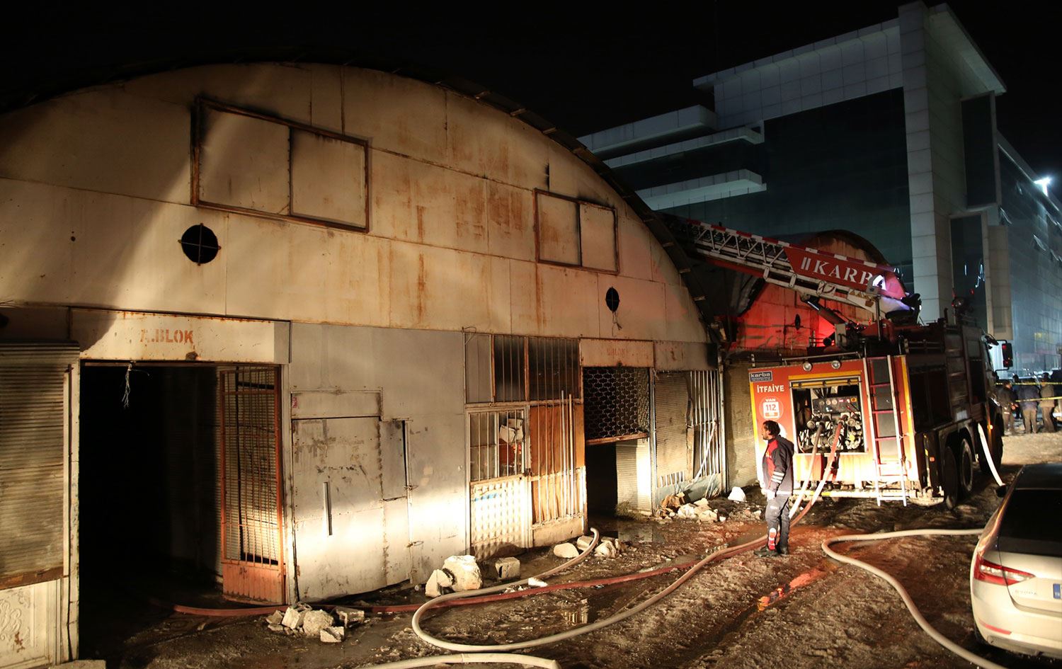 Birçok dükkanın zarar gördüğü yangını uzun uğraşlar sonucu kontrol altına alan itfaiye ekipleri, soğutma çalışmalarını sürdürüyor.