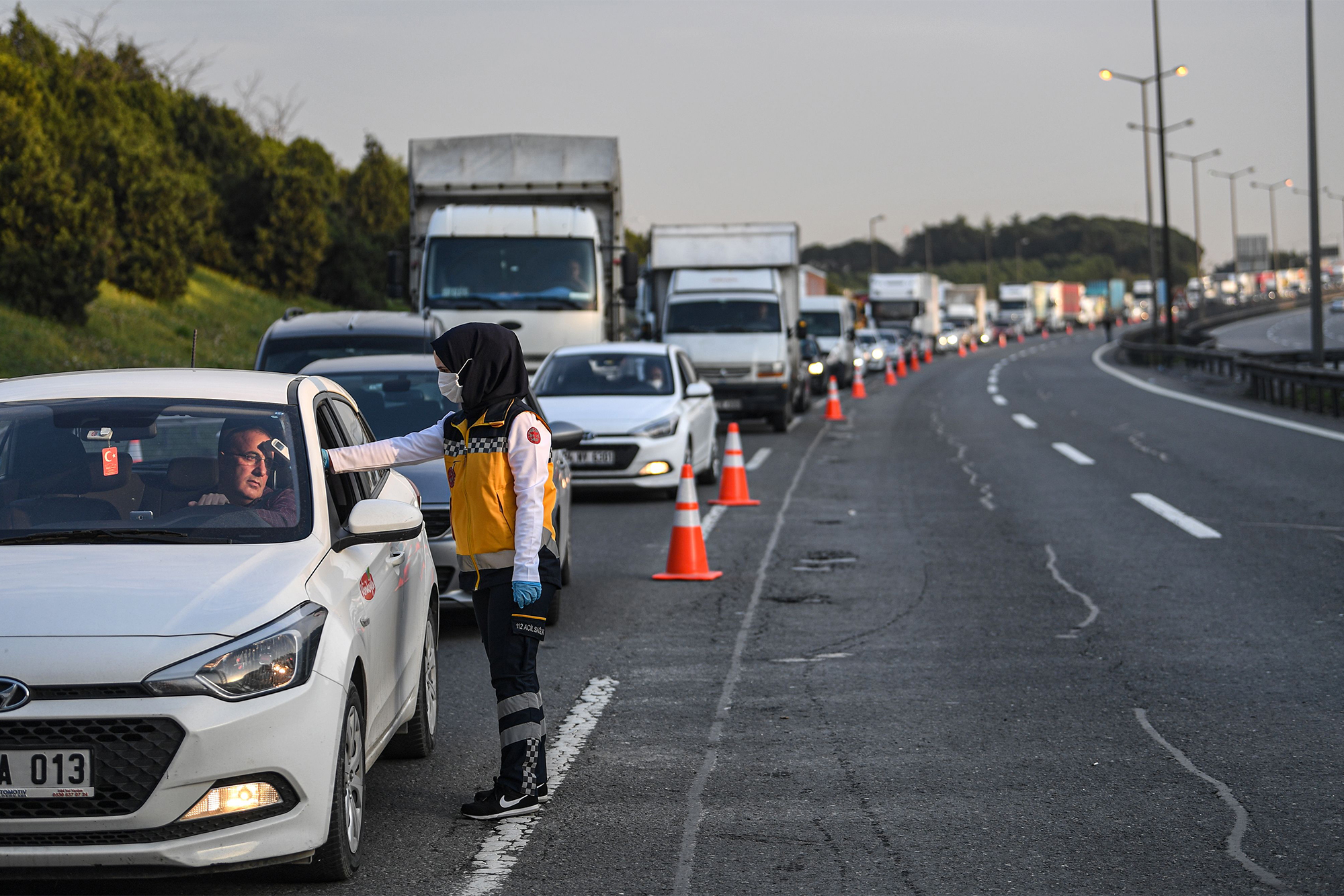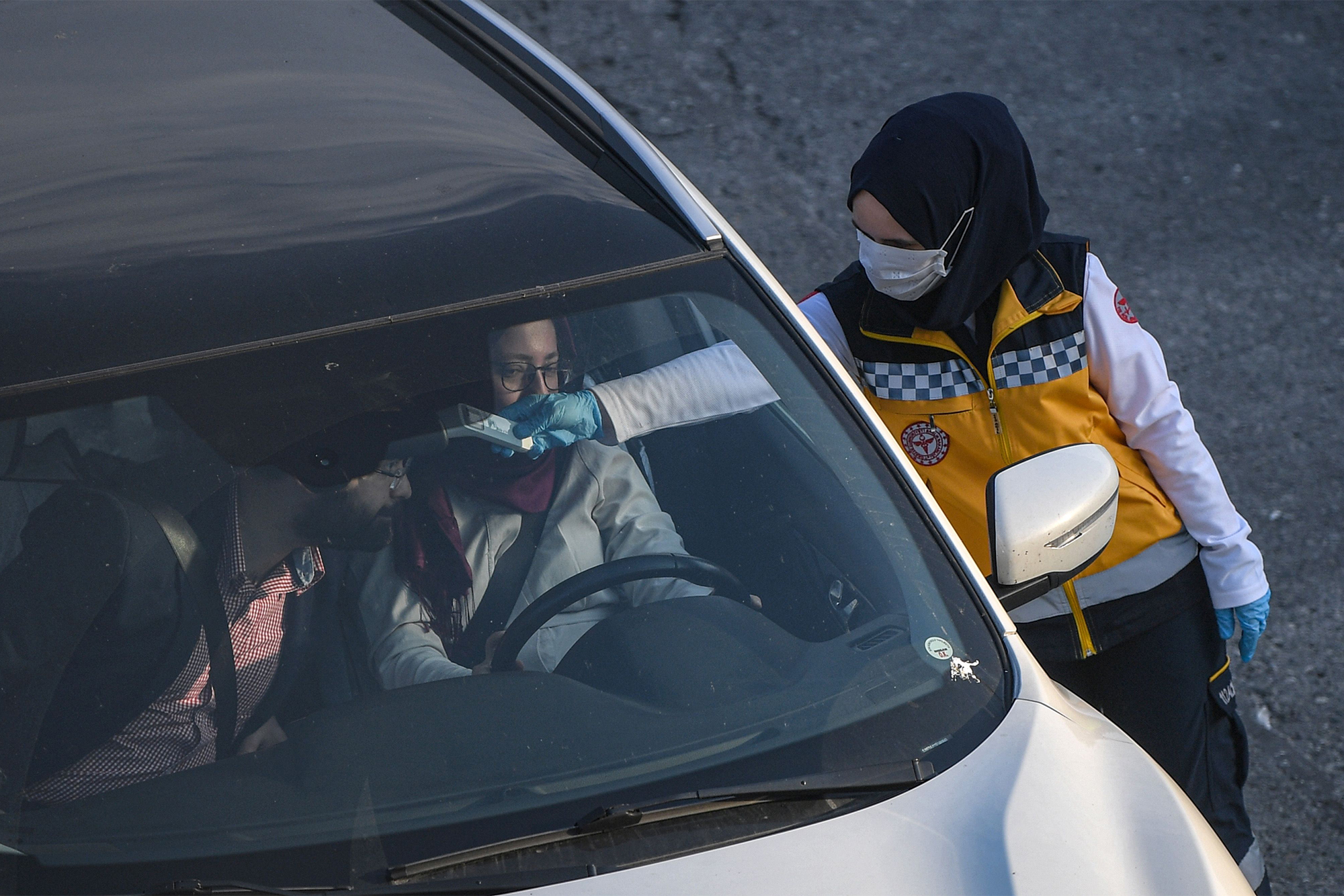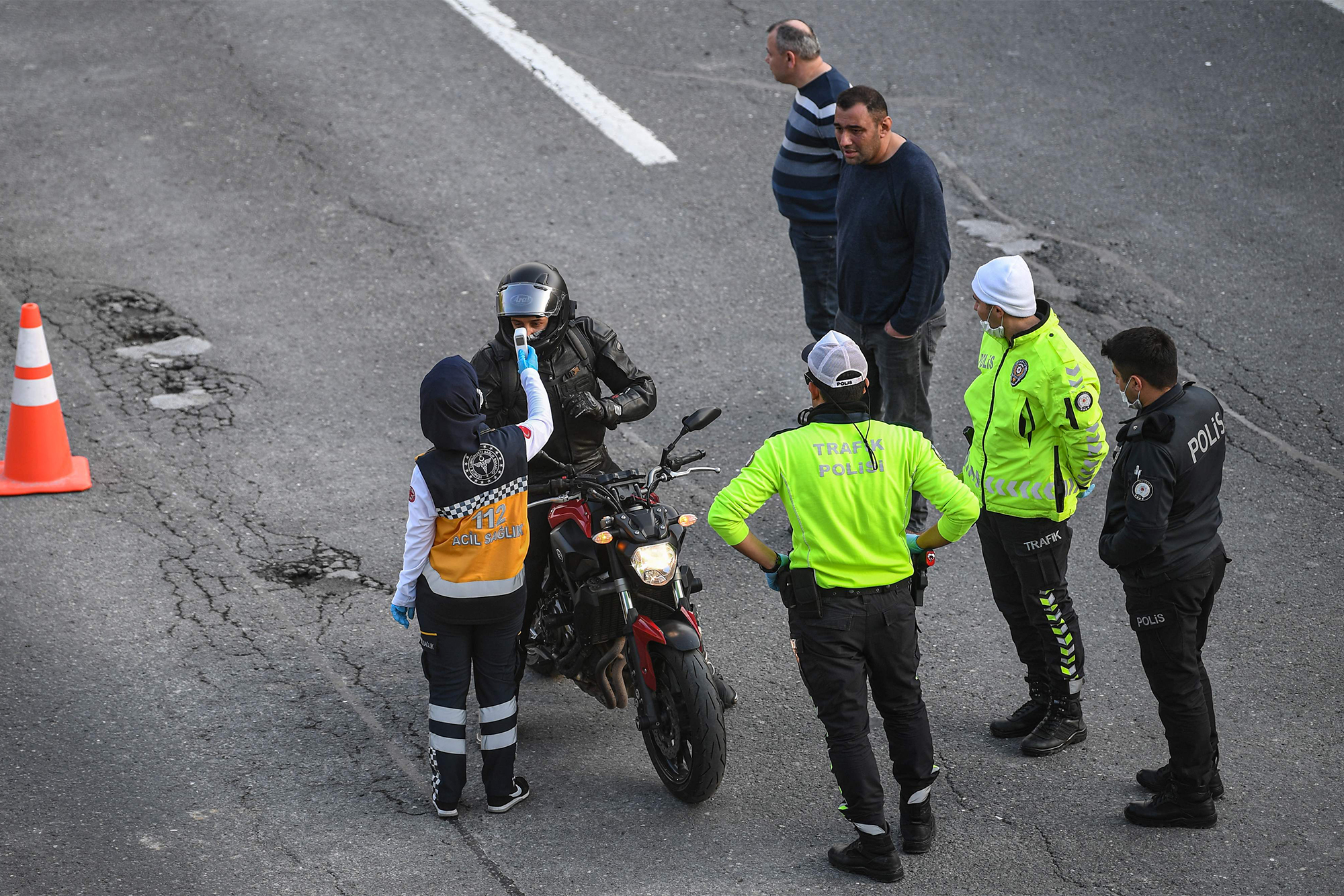 (AFP) - İstanbul'da yeni tip koronavirüs (Covid-19) tedbirleri kapsamında, kentin giriş ile çıkış noktalarında sürücülere ve yolculara ateş ölçümü yapılıyor.